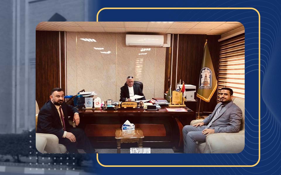 في خطوة لتعزيز التعاون الأكاديمي، زار رئيس قسم هندسة النفط والغاز في كلية الهندسة بجامعة وارث الأنبياء (عليه السلام)، الدكتور ضياء خفيف خشان، الجامعة التكنولوجية حيث استقبله رئيس قسم هندسة النفط والغاز الأستاذ الدكتور فاضل سرحان كاظم.
