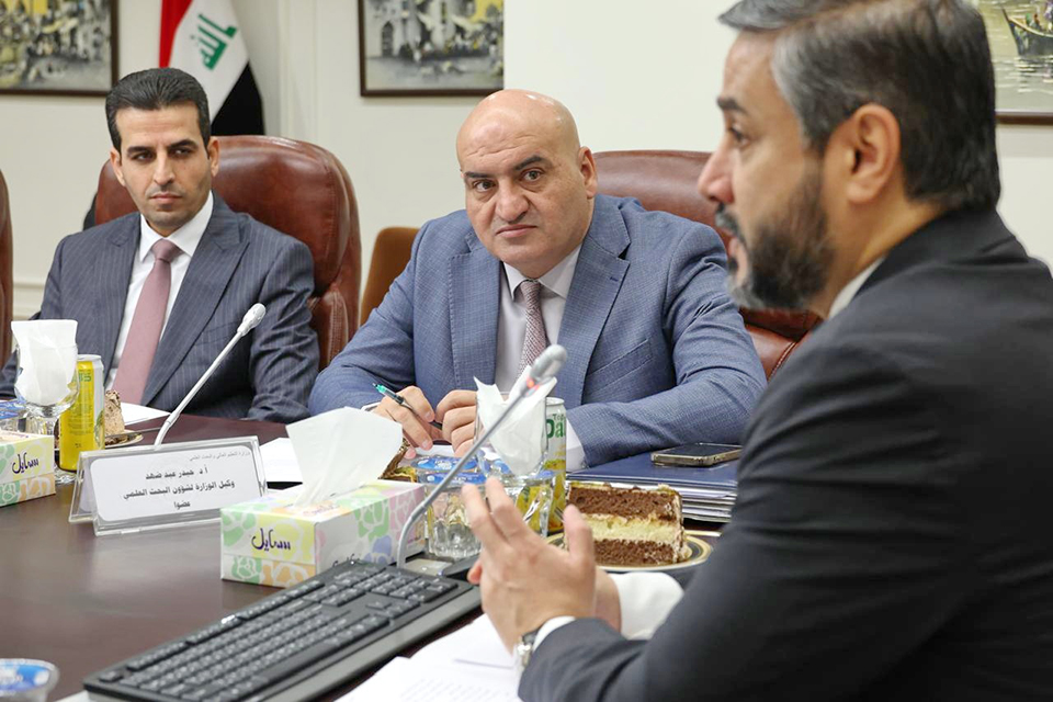 عقد وزير التعليم العالي والبحث العلمي الدكتور نعيم العبودي اجتماعا مع اللجنة الأكاديمية المركزية لاستثمار طاقات المبتعثين.