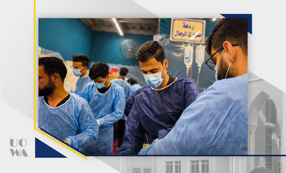 شارك عدد من طلبة كلية التمريض في جامعة وارث الأنبياء (عليه السلام) في المفارز الطبية التابعة لمستشفى سفير الإمام الحسين (عليه السلام)، لتقديم الإسعافات الأولية والرعاية الصحية لزوار الإمام الحسين (عليه السلام) في العاشر من محرم.