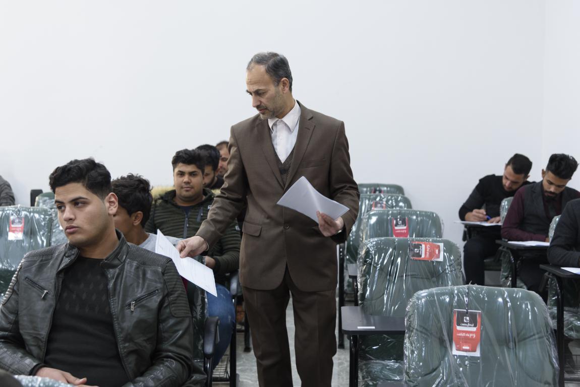 طلبة قسم هندسة تقنيات الروبوتات والذكاء الاصطناعي خلال تأدية امتحانات التقويم المستمر للفصل الدراسي الثاني.