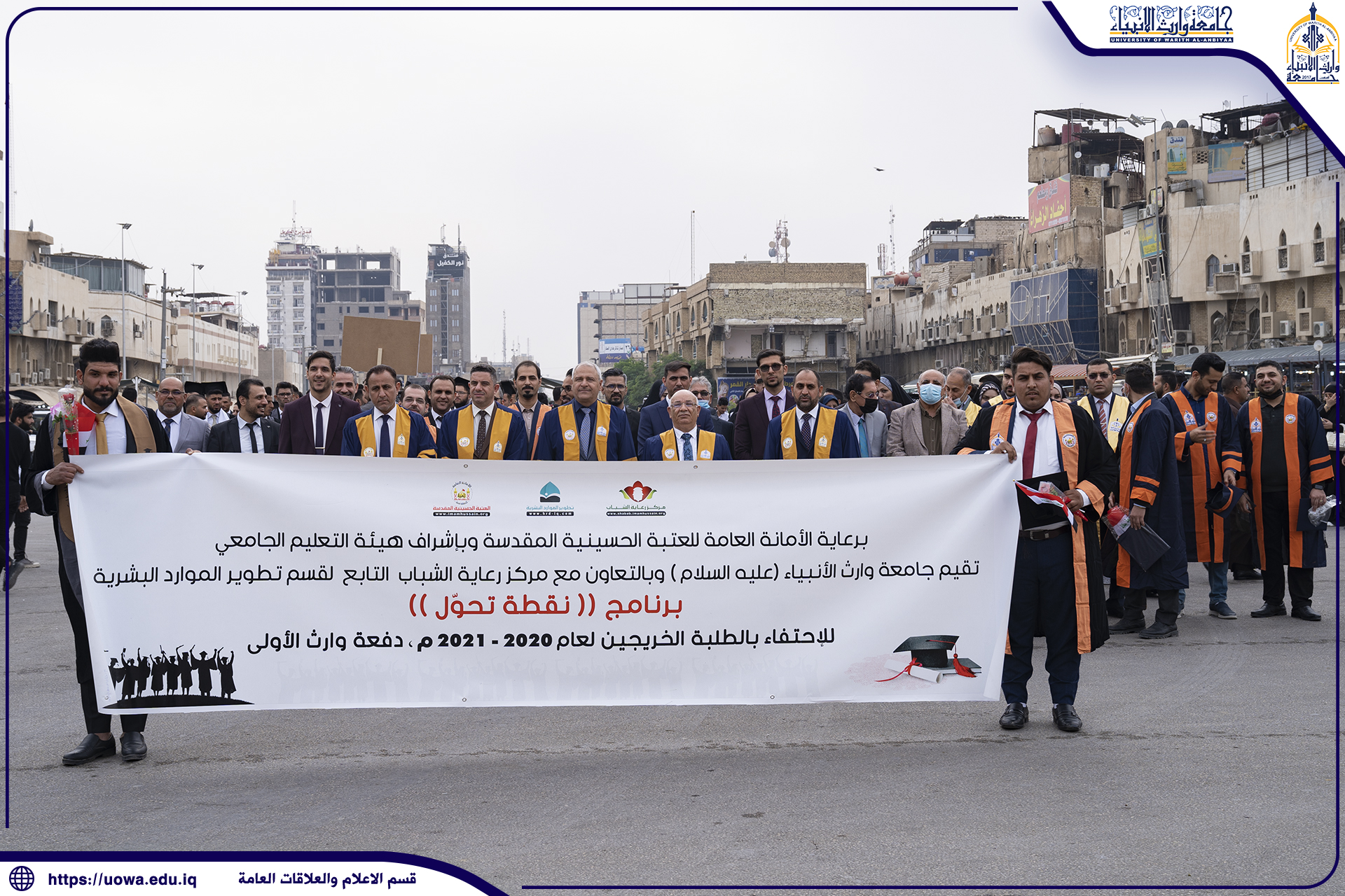 برعاية الامانة العامة للعتبة الحسينية المقدسة نظمت جامعة وارث الانبياء(عليه السلام)وبالتعاون مع مركز رعاية الشباب حفل تخرج مركزي للدفعة الأولى من طلبتها الاعزاء والتي حملت عنوان (دفعة وارث الاولى) .