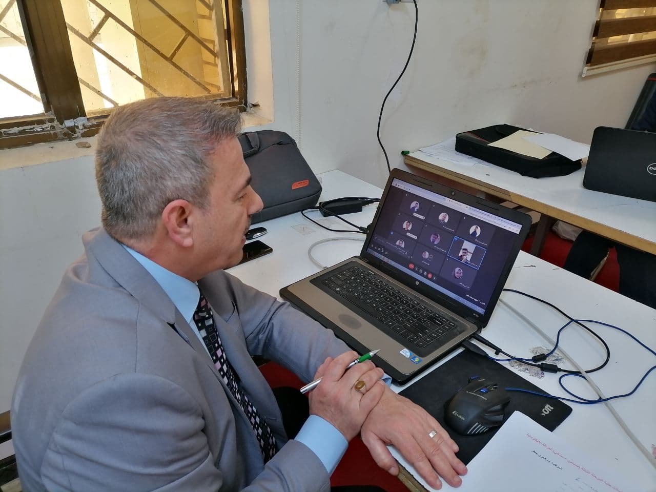 بالصور.. متابعة عميد كلية القانون في جامعة وارث الأنبياء (عليه السلام) الاستاذ المساعد الدكتور علي صاحب الشريفي لعمل المراقبات الالكترونية في الكلية.