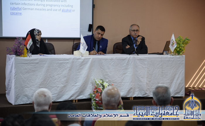 أقيمت في كلية الإدارة والأقتصاد وبالتعاون مع رئاسة الجامعة ندوة علمية بعنوان (التّحليل النسيجي والنفسي لعارض التوحُّد) ألقاها الأستاذ الدّكتور اكرم يوسف ياسر المتخصص في علم الانسجة، وقال الدّكتور اكرم أن ألهدف من هذهِ المحاضرة هو التّعريف بكيفية حصول عارض التوحُّد وما هي النصيحة التي تٌقدّم الى العوائلِ وبالأخص الأم الحامل التي عليها ان تكون حريصة قبل الحمل وأثنائه  لتجنب طفلها هَذَا العارض، وأضاف أنني أشجع وأثني على جامعة وارث الأنبياء لتبنيها هَكَذَا ندوات ومحاضرات والتواصل مع الجامعات الأخرى وأرى ان الأمور فِيهَا واعدة الى خير خدمة للعملية التعليمية