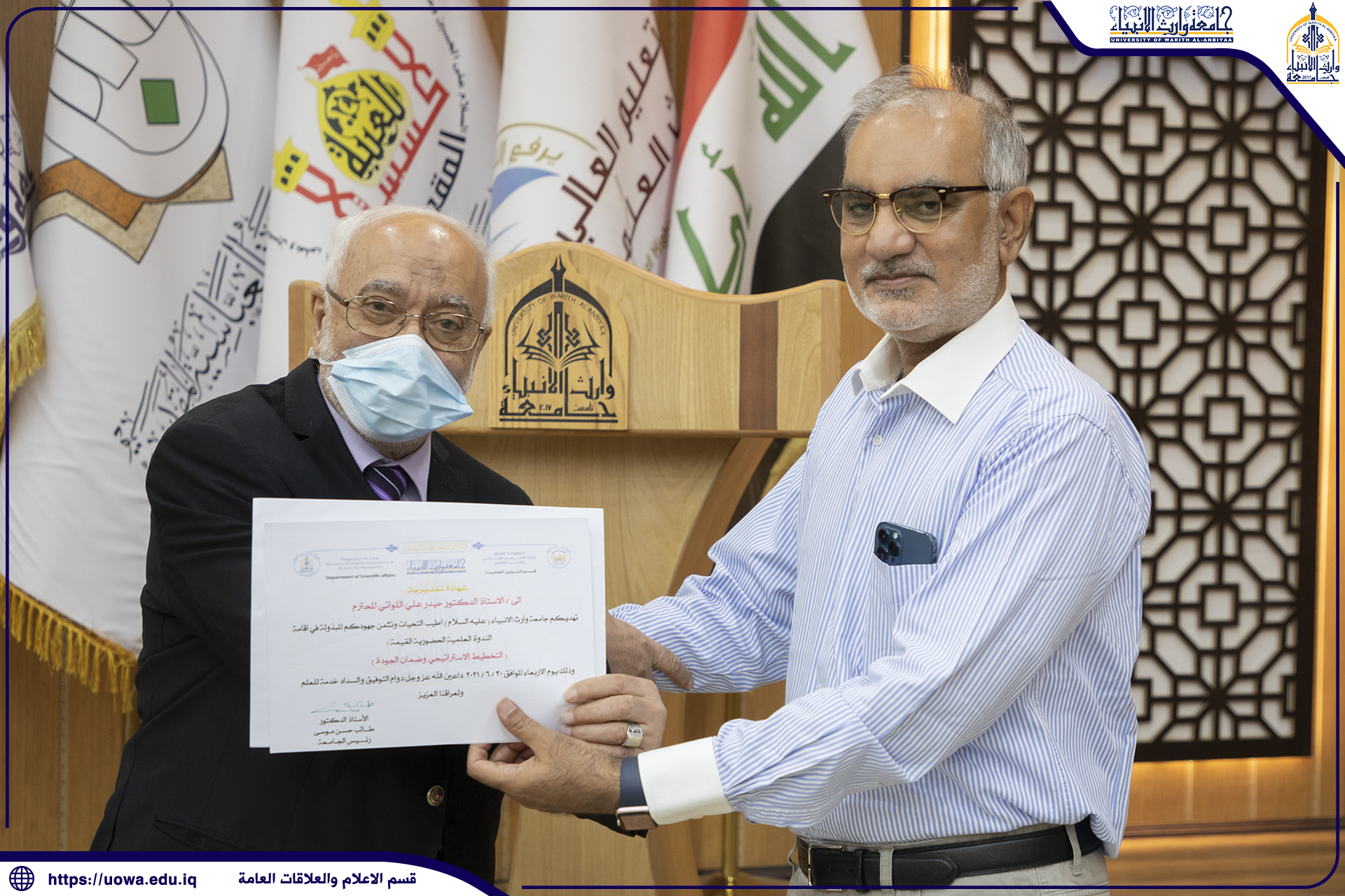 حرصاً على تطبيق معايير الجودة الجامعية ، اقام قسم الشؤون العلمية وبالتعاون مع كلية الهندسة في جامعة وارث الانبياء (عليه السلام) ندوة علمية بعنوان (التخطيط الاستراتيجي وضمان الجودة) القاها البروفيسور حيدر اللواتي الخبير في الذكاء الاصطناعي وضمان الجودة/ جامعة سلطان قابوس في سلطنة عمان ، حيث تطرق اللواتي الى اهم خطوات التخطيط الاستراتيجي وكيفية تطبيقهما ،وماهي المعايير العالمية التي يجب ان تطبقها مؤسسات التعليم العالي للتميز في ضمان الجودة ، وتطرق الخبير في الذكاء الاصطناعي الى تجاربه الشخصية في هذا المجال وتجارب عدد من الجامعات العالمية التي عمل فيها ، يذكر ان جامعة وارث الانبياء(عليه السلام)ومن خلال عقد هكذا ندوات وورش عمل تسعى الى التميز في ضمان الجودة من خلال تحقيق الخطوات المهمة في عقد توأمة علمية مع جامعات عالمية .