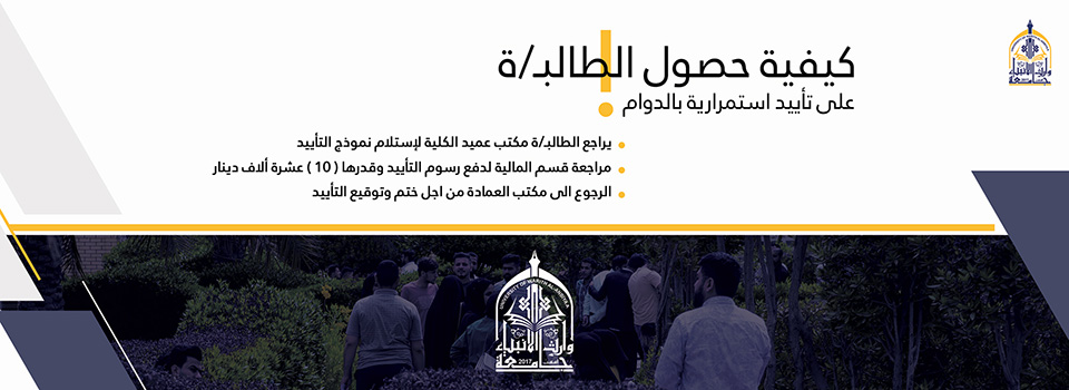 يراجع الطالبـ/ة مكتب عميد الكلية لاستلام نموذج التأييد.