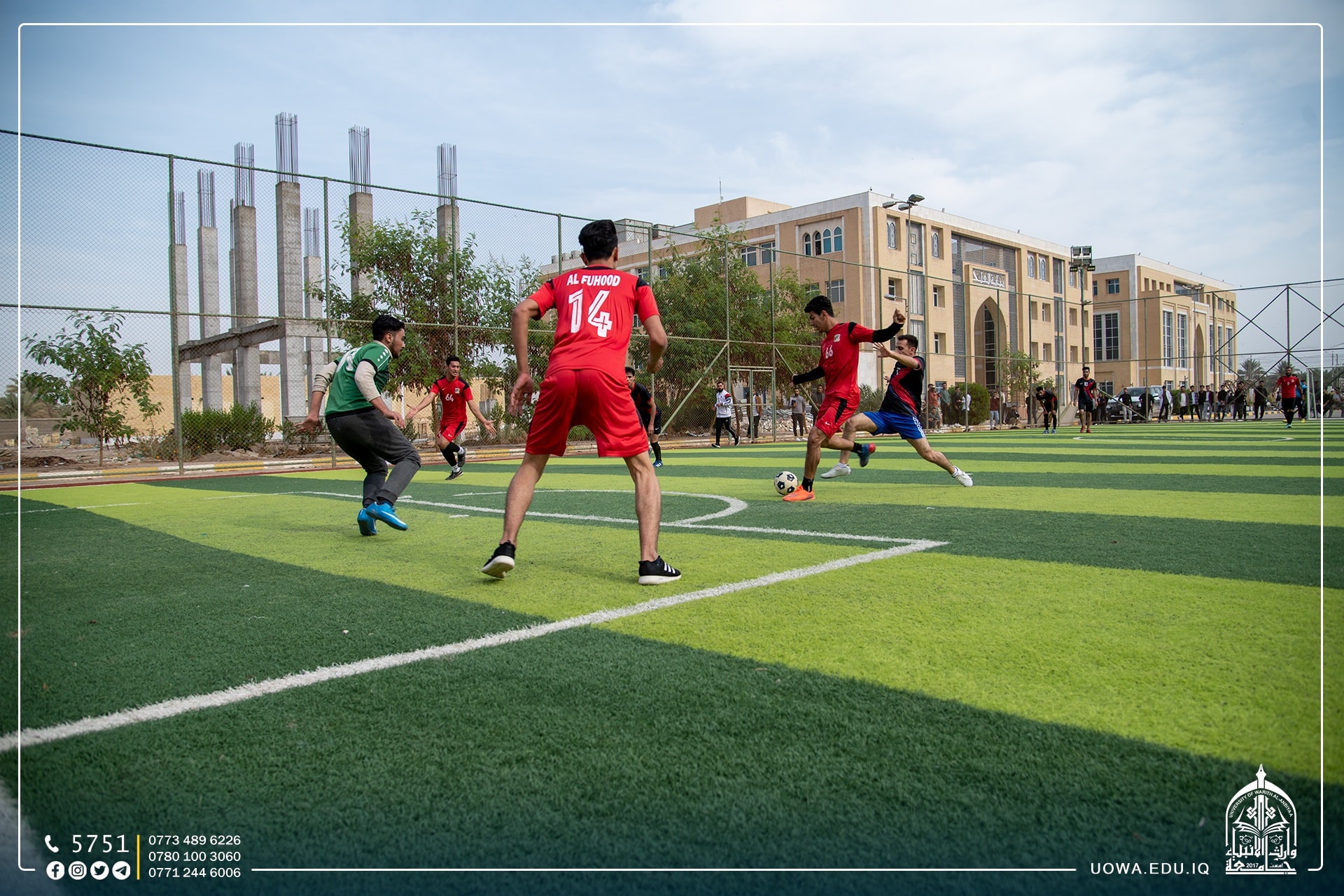 بالصور .... استمرار منافسات بطولة وارث الانبياء لخماسي الكرة بين فرق كليات واقسام الجامعة،التي يقيمها قسم النشاطات الطلابية بالتعاون مع مركز رعاية الشباب بالعتبة الحسينية المقدسة.