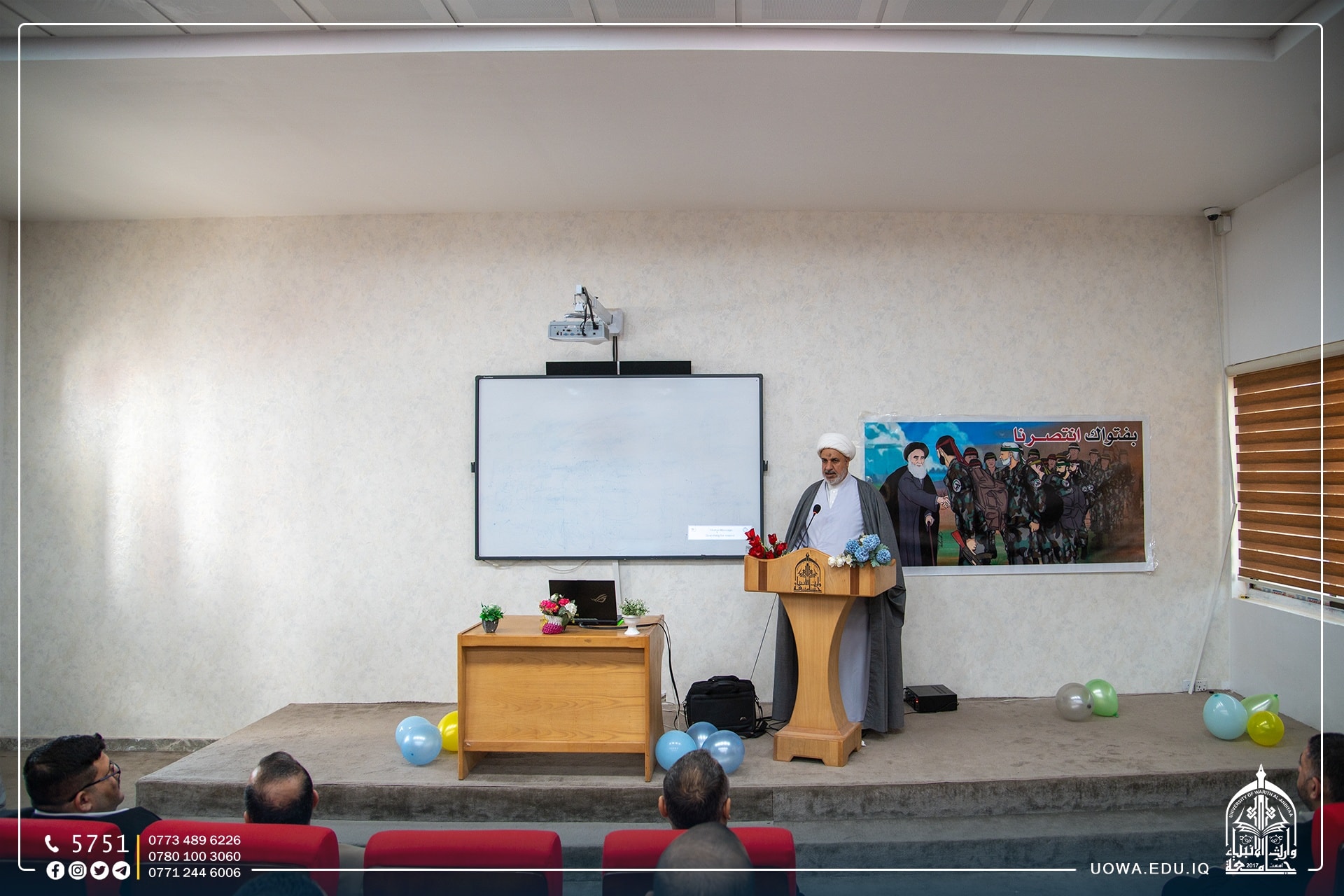 برعاية السيد رئيس الجامعة الاستاذ الدكتور ابراهيم الحياوي وبإشراف عميد كلية الهندسة الاستاذ الدكتور واقد الموسوي أقامت كلية الهندسة في جامعة وارث الانبياء (عليه السلام) حفلاً بمناسبة يوم النصر العراقي ضد العصابات الإرهابية.
