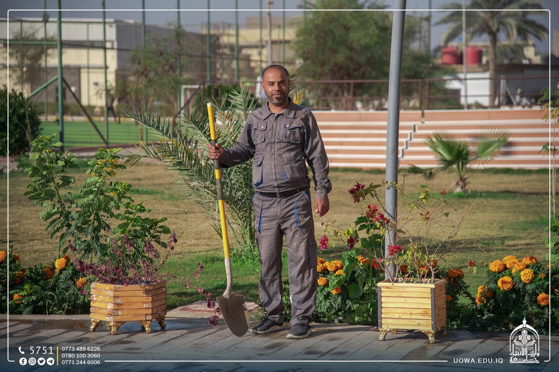 بالصور...جهود استثنائية لملاكات قسم شؤون الديوان في جامعة وارث الانبياء(عليه السلام) من خلال الاهتمام بالمساحات الخضراء ونظافة الجامعة لإظهارها بأبهى صورة.