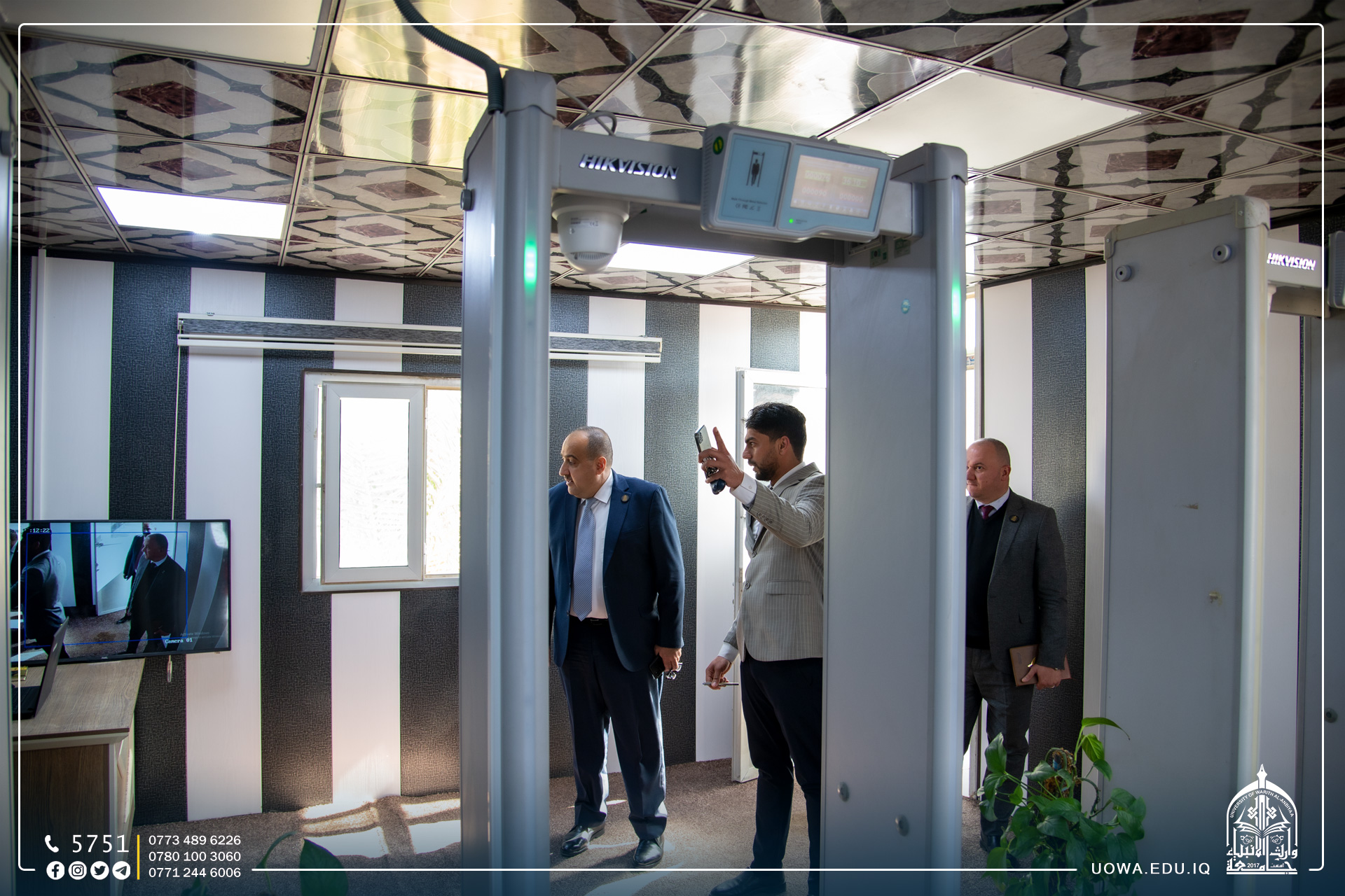 حرصاً على سلامة طلبتها الاعزاء، ادخلت رئاسة جامعة وارث الانبياء(عليه السلام) منظومات دخول متطورة داخل مقصورات دخول الطلبة وبمواصفات عالية، وجاء تجهيز هذه المنظومات بجهود قسم المتابعة وقسم ديوان الجامعة، إذ تتميز هذه المنظومات بتسجيلها لاعداد الاشخاص في حال الدخول والخروج، ومقياس لدرجة الحرارة، وكاميرا حرارية، وحساسات لكشف المعادن، وتعمل هذه المنظومات على تقليل الزخم على بوابات الدخول والسرعة في حركة الطلبة داخل المقصورة .