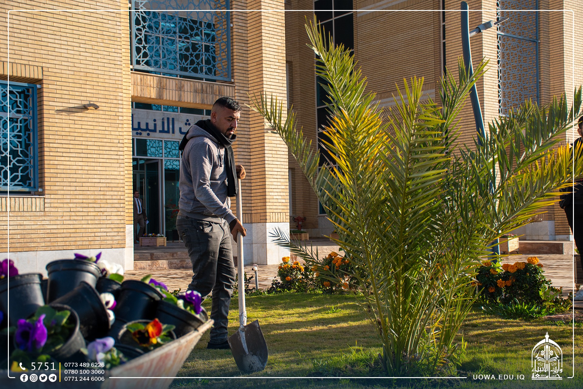 من خلال الاهتمام بالمساحات الخضراء، الصيانة، ونظافة الجامعة لإظهارها بأبهى صورة.