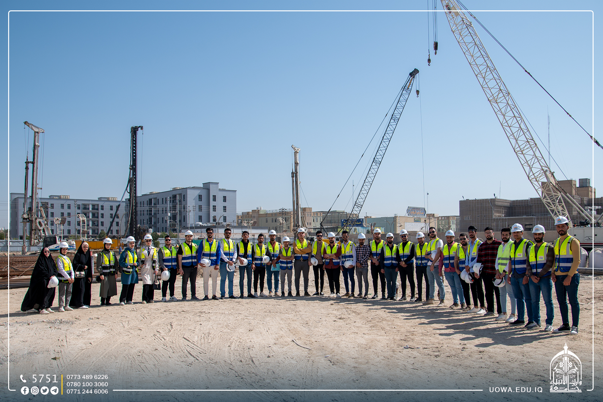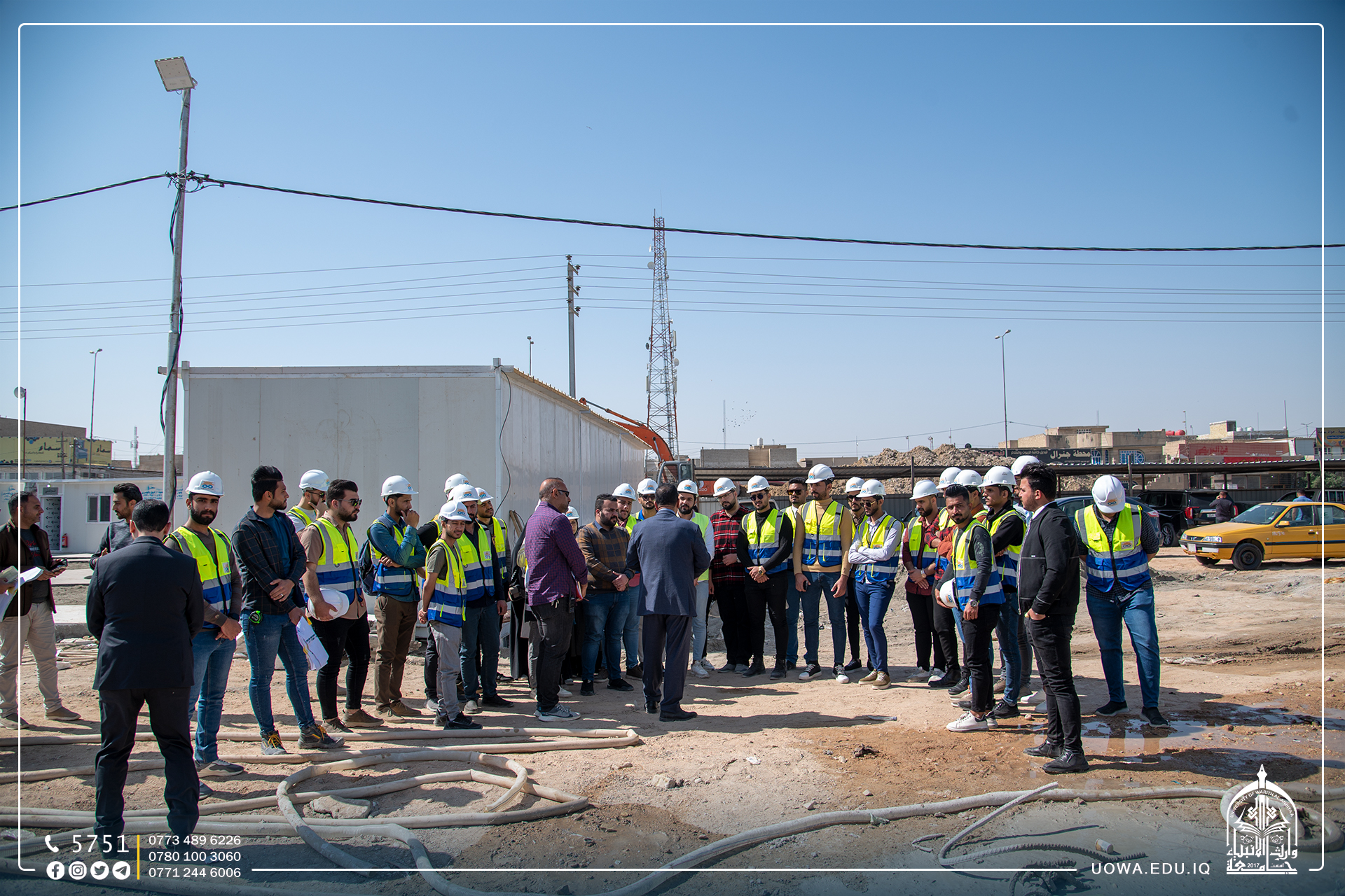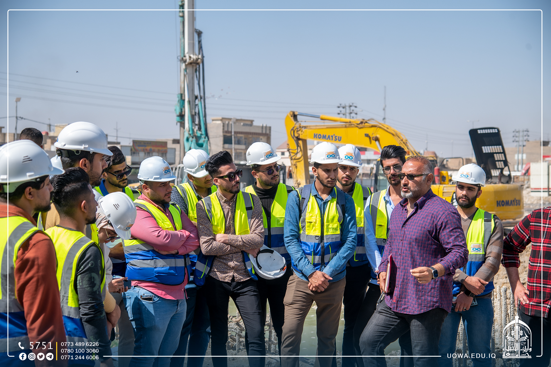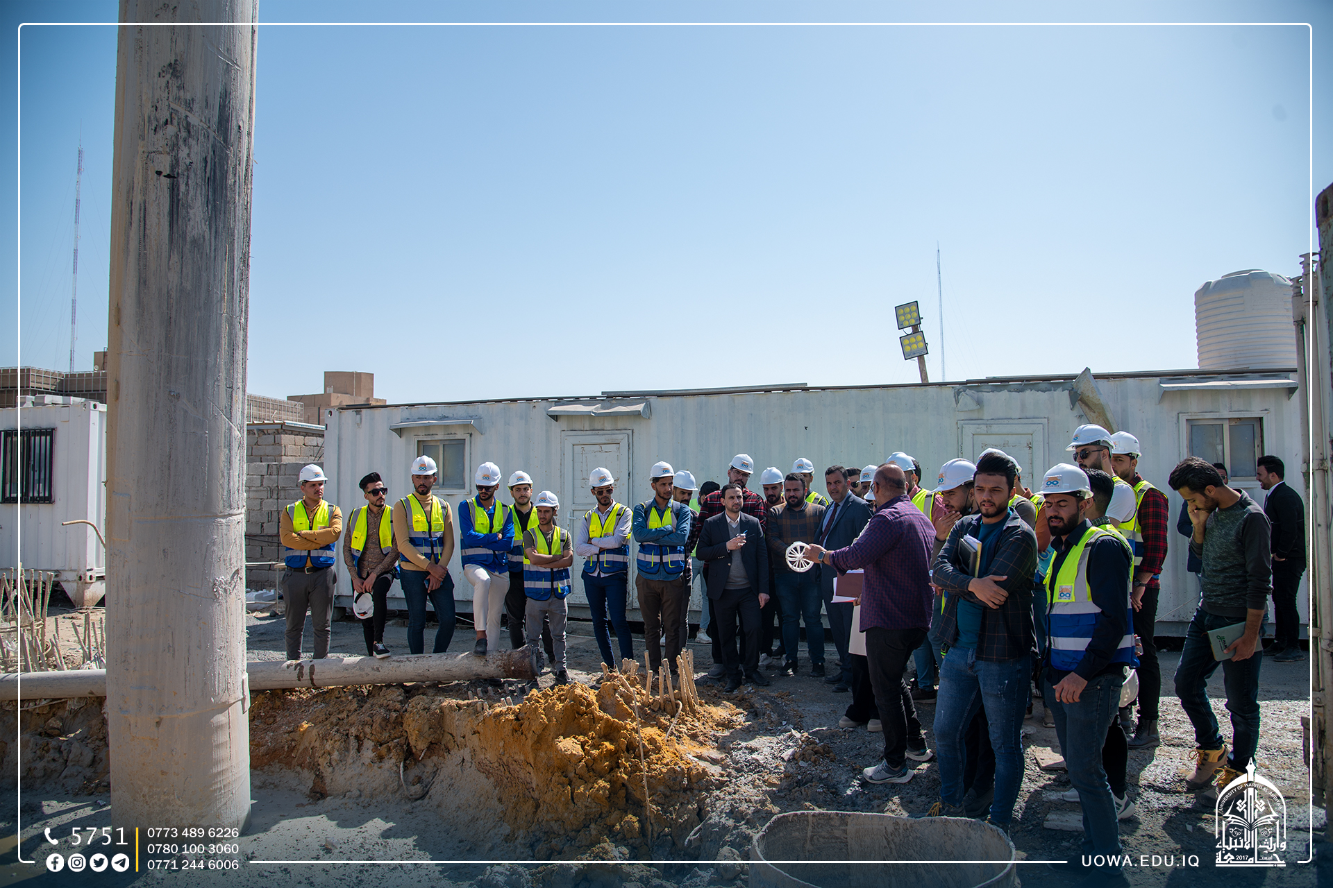 بالصور... زيارة علمية لطلبة كلية الهندسة / قسم الهندسة المدنية الى مشروع توسعة مؤسسة وارث لعلاج الاورام السرطانية التابعة للعتبة الحسينية المقدسة من اجل الاطلاع على مراحل وضع الركائز الاساسية للبنايات.
