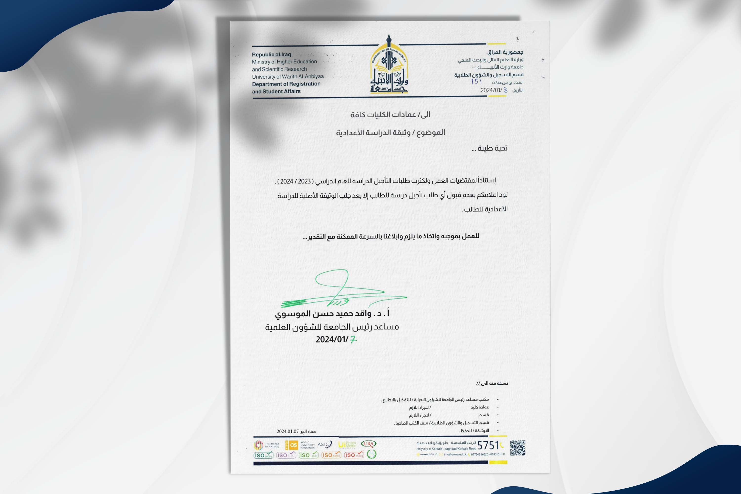 - الحصول على معدل تراكمي لا يقل عن (50) لدرجة البكالوريوس ولا يقل عن (65) لدرجة الماجستير .