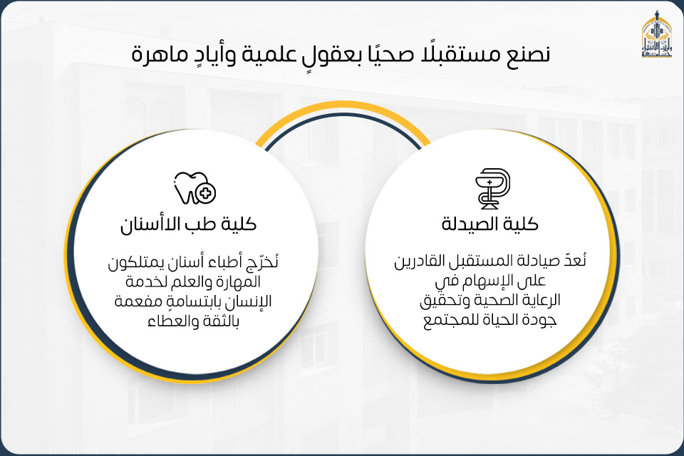 في إطار سعي جامعة وارث الأنبياء (عليه السلام) لإعداد كوادر طبية مؤهلة تسهم في الارتقاء بالقطاع الصحي في العراق،كلية الصيدلة وكلية طب الأسنان تقدم برامج أكاديمية متميزة