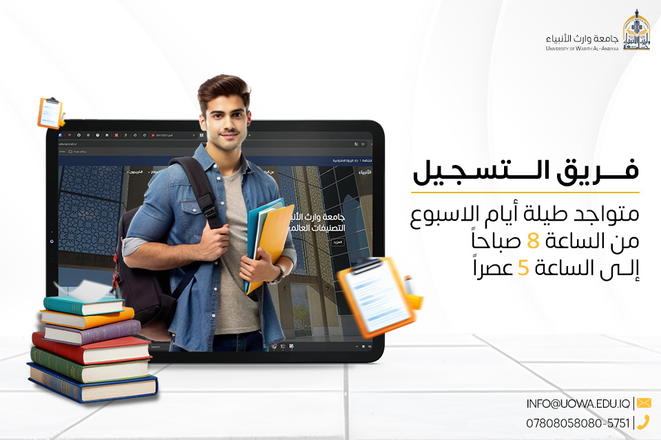 كما نود التنويه أن فريق التسجيل في جامعة وارث الانبياء(ع) متواجد يوميا