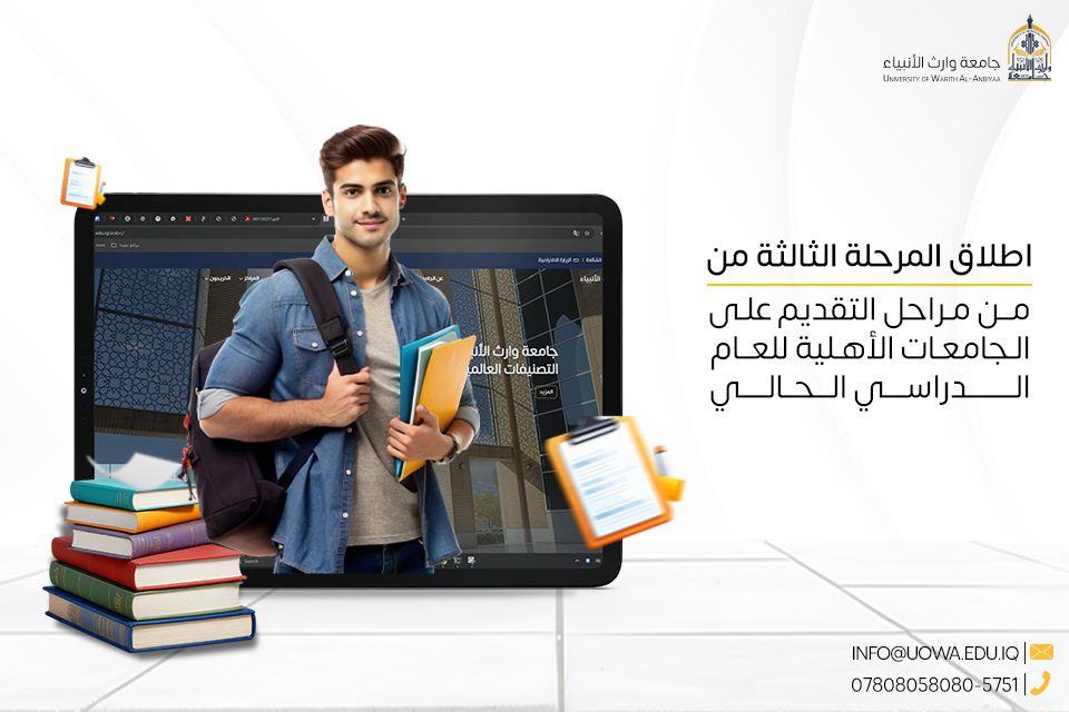 انطلاق عملية التقديم(إنشاء حساب الطالب)، على كليات وأقسام جامعة وارث الأنبياء (عليه السلام)