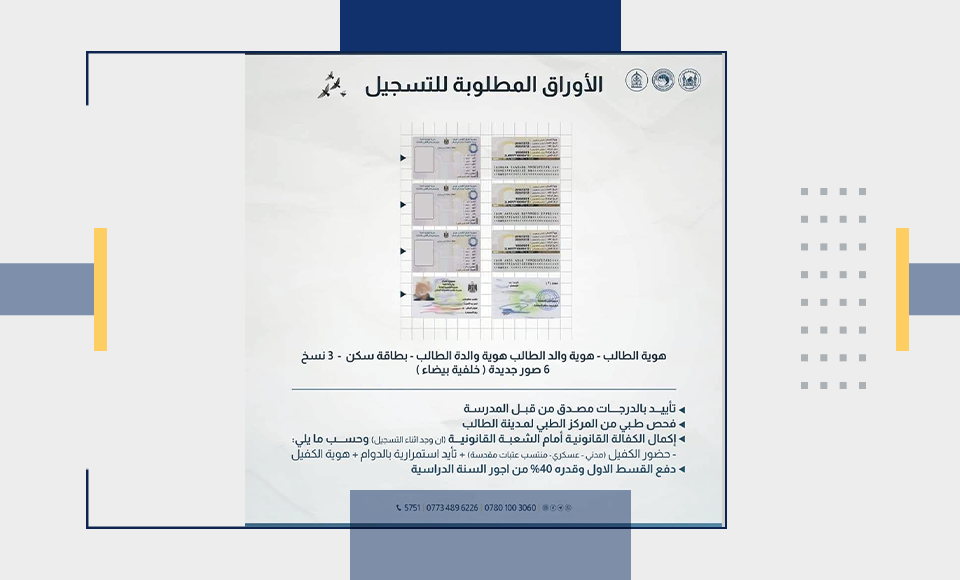 المستمسكات المطلوبة لعملية التسجيل: