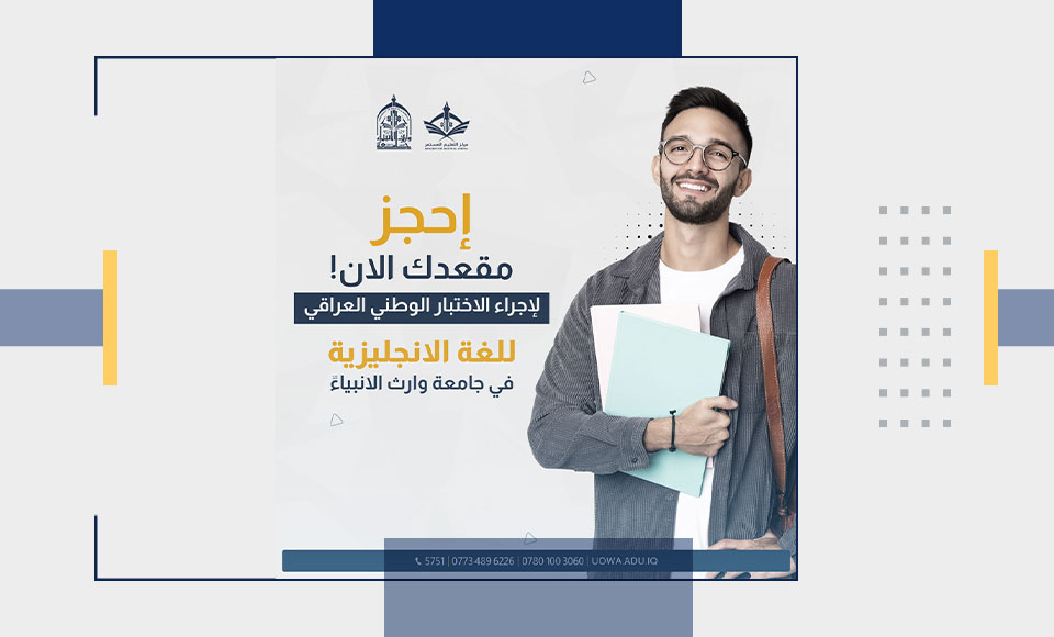تعلن جامعة وراث الانبياء(عليه السلام) عن فتح الحجز للاختبار الوطني العراقي للغة الانكليزية الموحد.