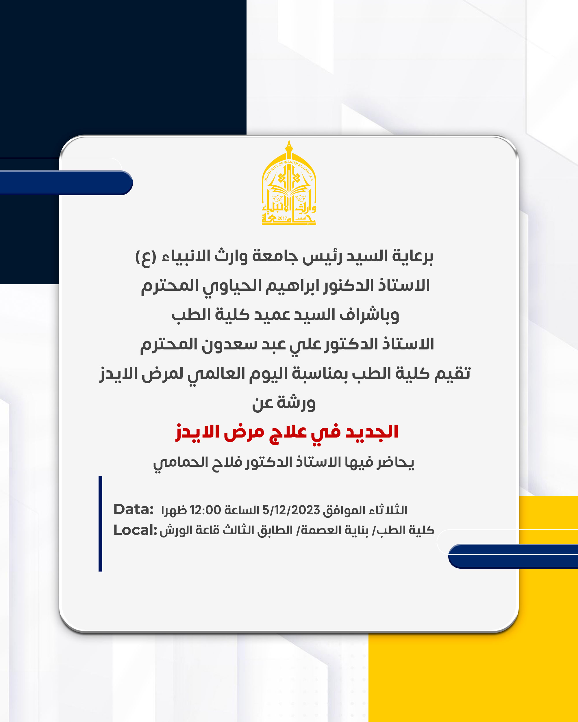 المكان: جامعة وارث الأنبياء في كربلاء المقدسة