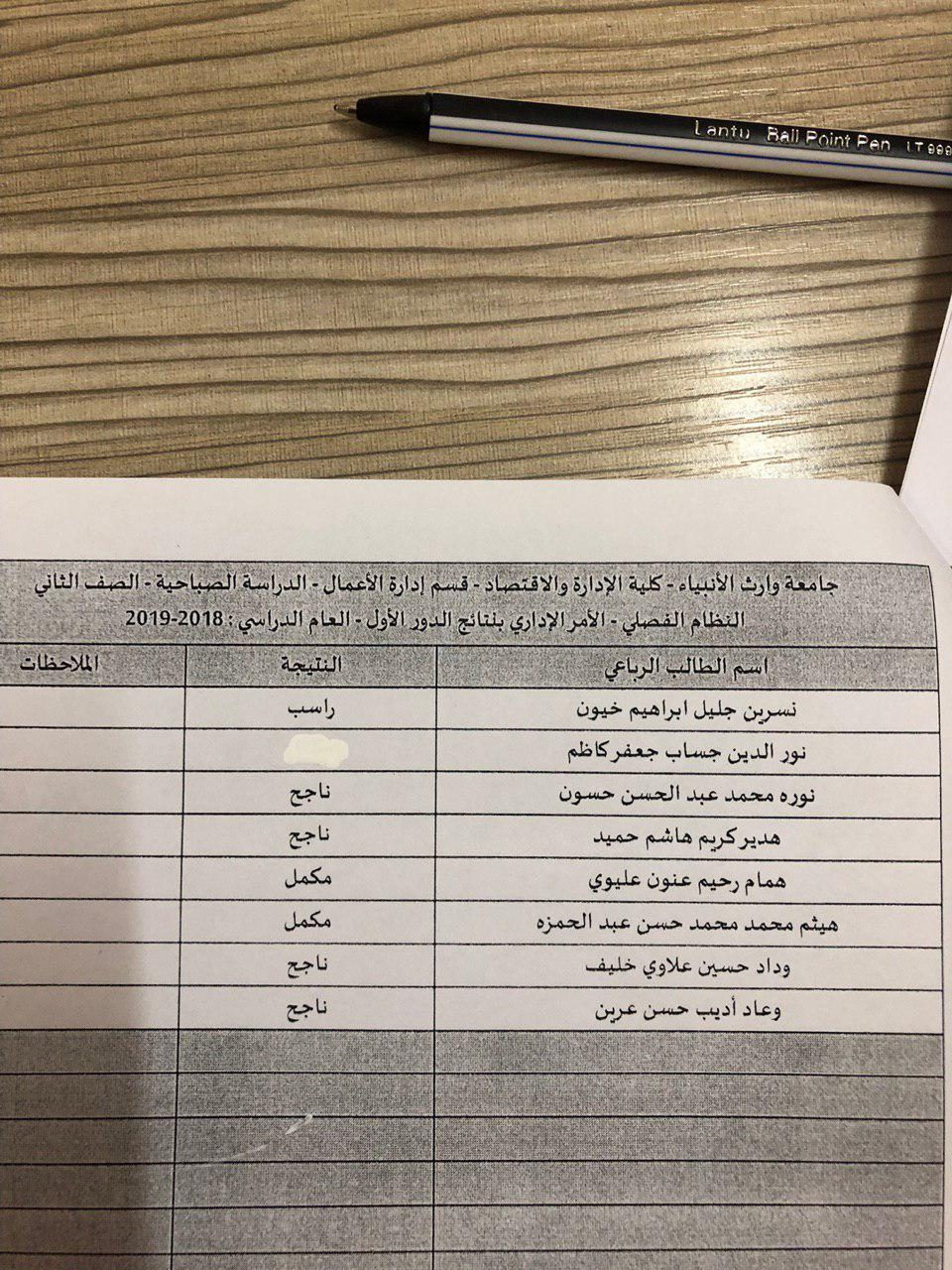 نتائج النهائية للكورس الثاني 2018-2019 / قسم ادارة الاعمال
