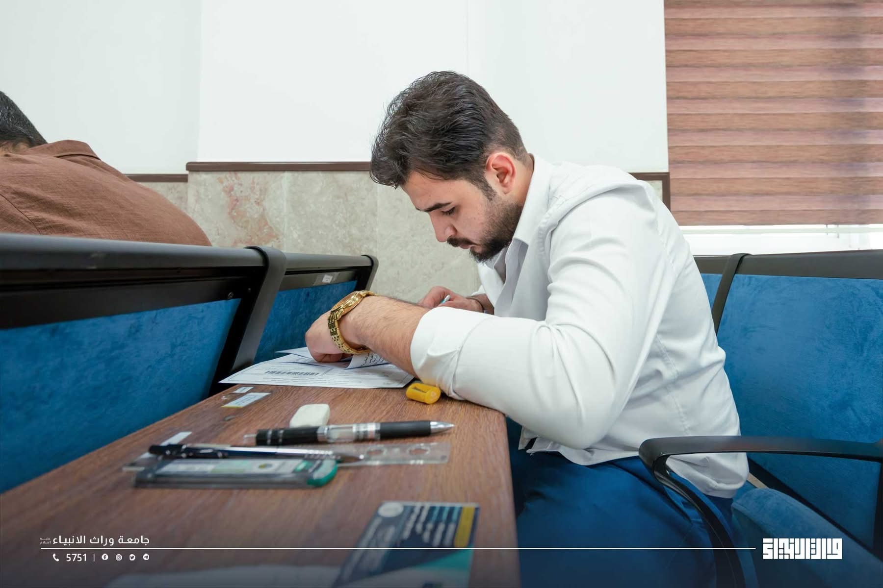 "جانب من الامتحانات النهائية في كلية الادارة والاقتصاد/ جامعة وارث الأنبياء (عليه السلام)، التي تُقام بإشراف مباشر من رئاسة الجامعة، ومتابعة حثيثة من المساعد العلمي الأستاذ الدكتور واقد الموسوي، وبدعم وجهود مكثفة تبذلها عمادات الكليات واللجان الامتحانية.