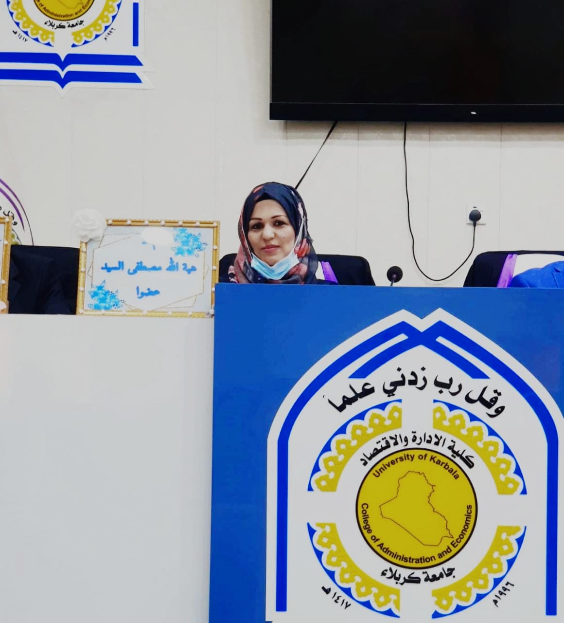 شاركت الدكتورة هبة الله مصطفى رئيس قسم المحاسبة في كلية الإدارة والاقتصاد في مناقشة رسالة الماجستير للطالبة نورة محسن دخيل لرسالتها الموسومة (تقييم اداء المصارف التجارية بإستخدام التحليل المالي المركب) وذلك في يوم الاثنين المصادف ٢٠٢٢/١٠/١٠؛ في جامعة كربلاء كلية الإدارة والاقتصاد قسم العلوم الماليه والمصرفيه.