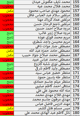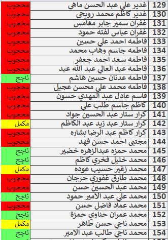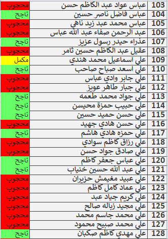 نتائج امتحانات الكورس الاول قسم المحاسبة المرحلة الاولى للدراسة الصباحية والمسائية