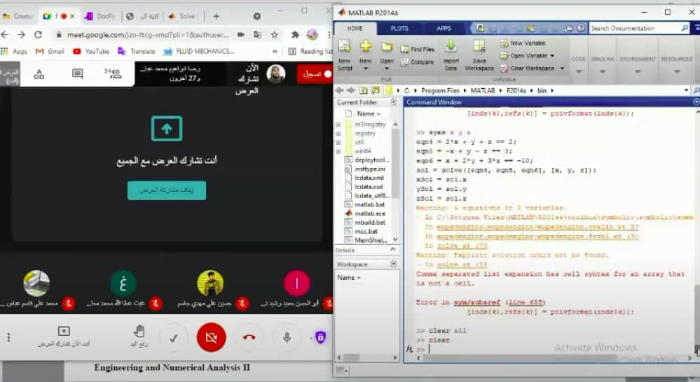 جانب من المحاضرة العملية لمادة التحليلات الهندسية و الطرق العددية لطلبة المرحلة الثالثة في قسم الهندسة المدنية