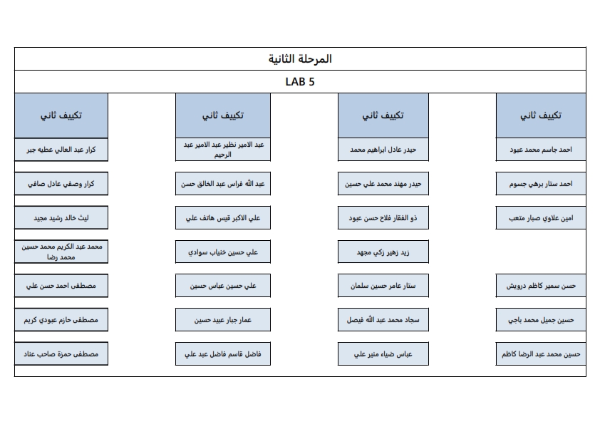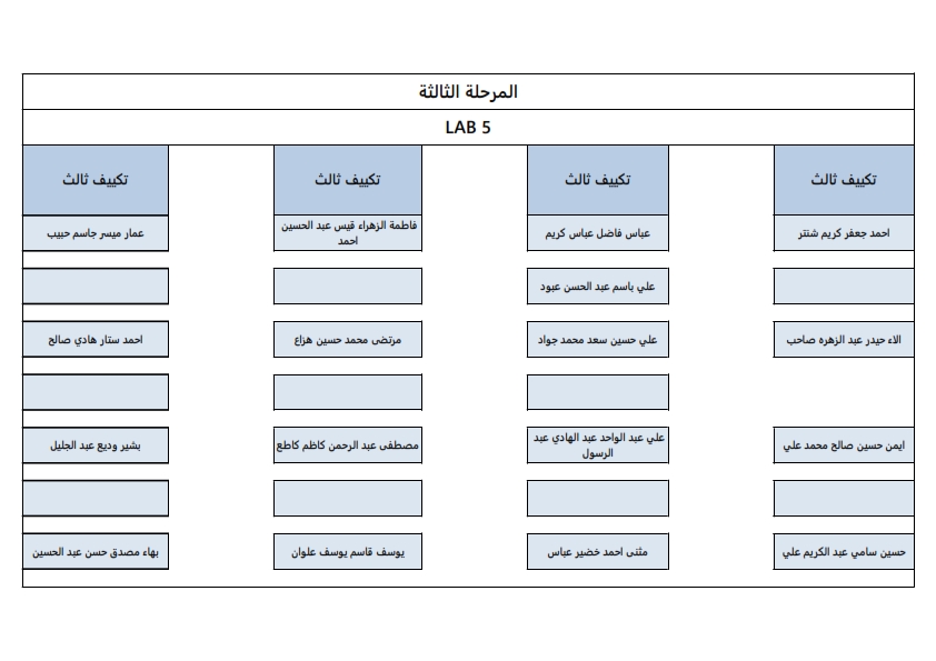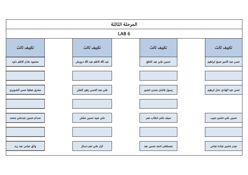 خارطة توزيع اماكن الطلبة لقسم هندسة تقنيات التكييف والتبريد