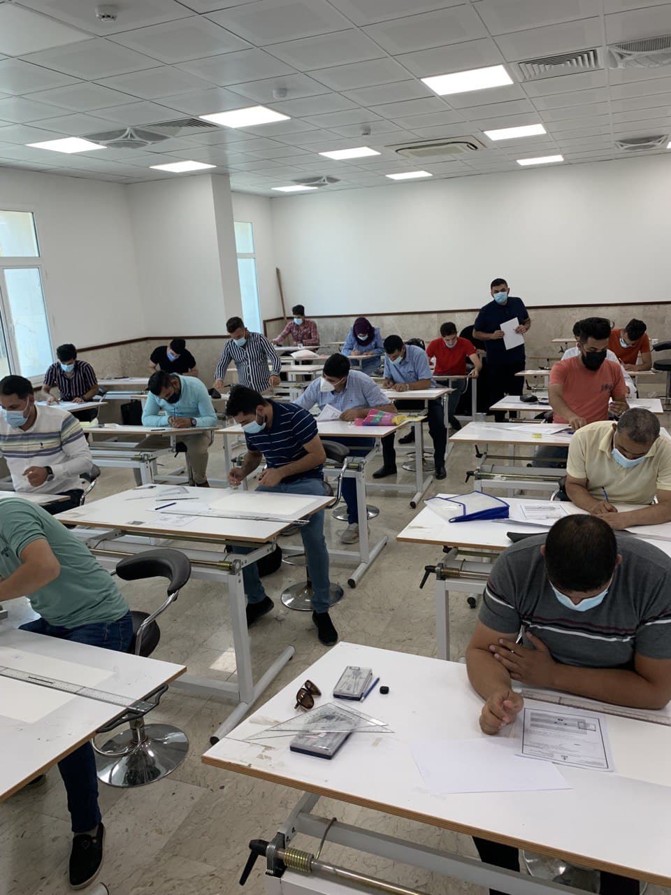 جانب من امتحان الحضوري لمادة الرسم الهندسي لطلبة المرحلة الأولى - قسم الهندسة المدنية يوم الاثنين المصادف 26/7/2021.
