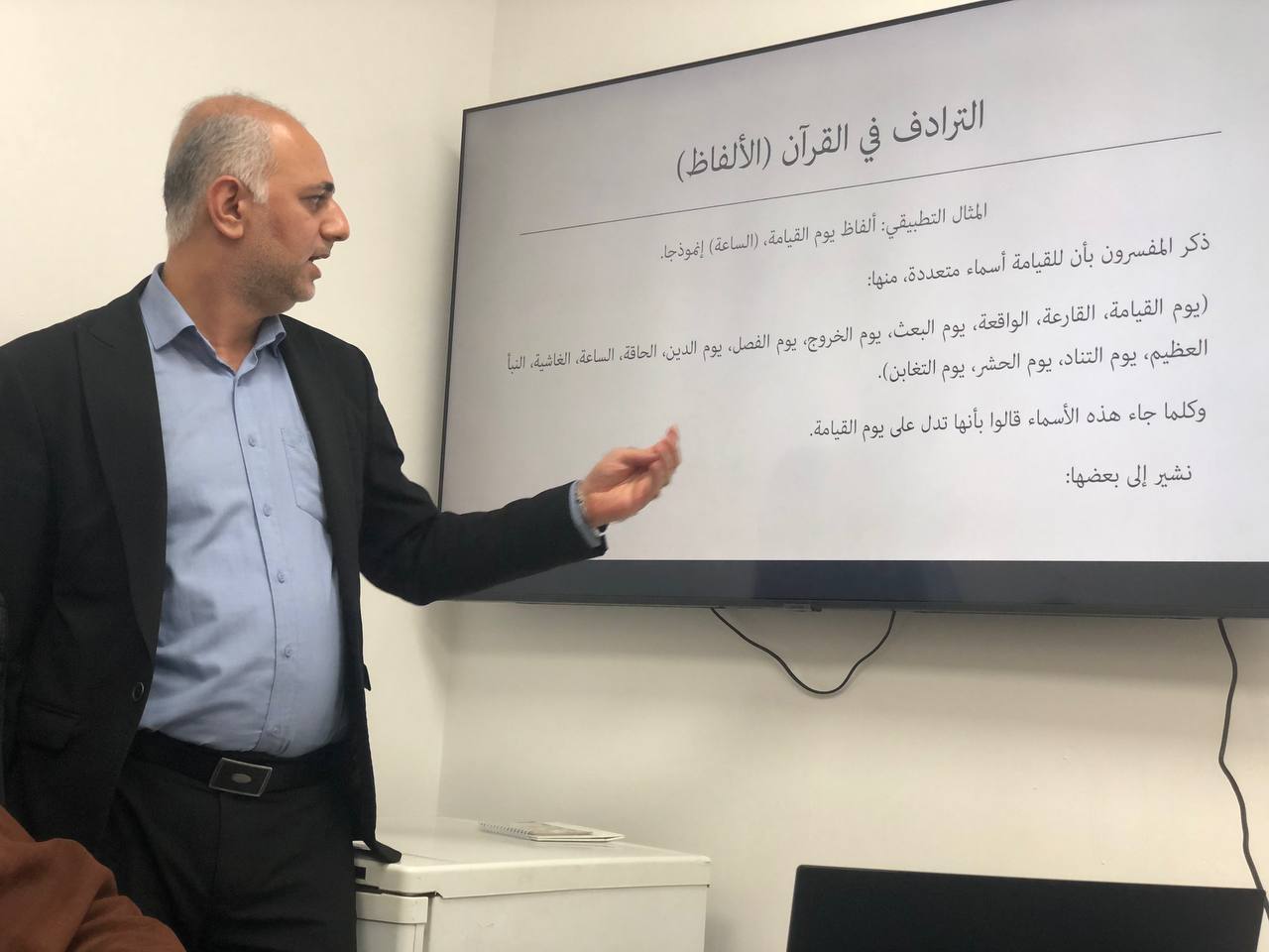 حاضر في الدورة الدكتور منتظر شكر خضر، بهدف تعزيز المعرفة حول دور الترادف في الفهم العميق لتفسير القرآن الكريم.
