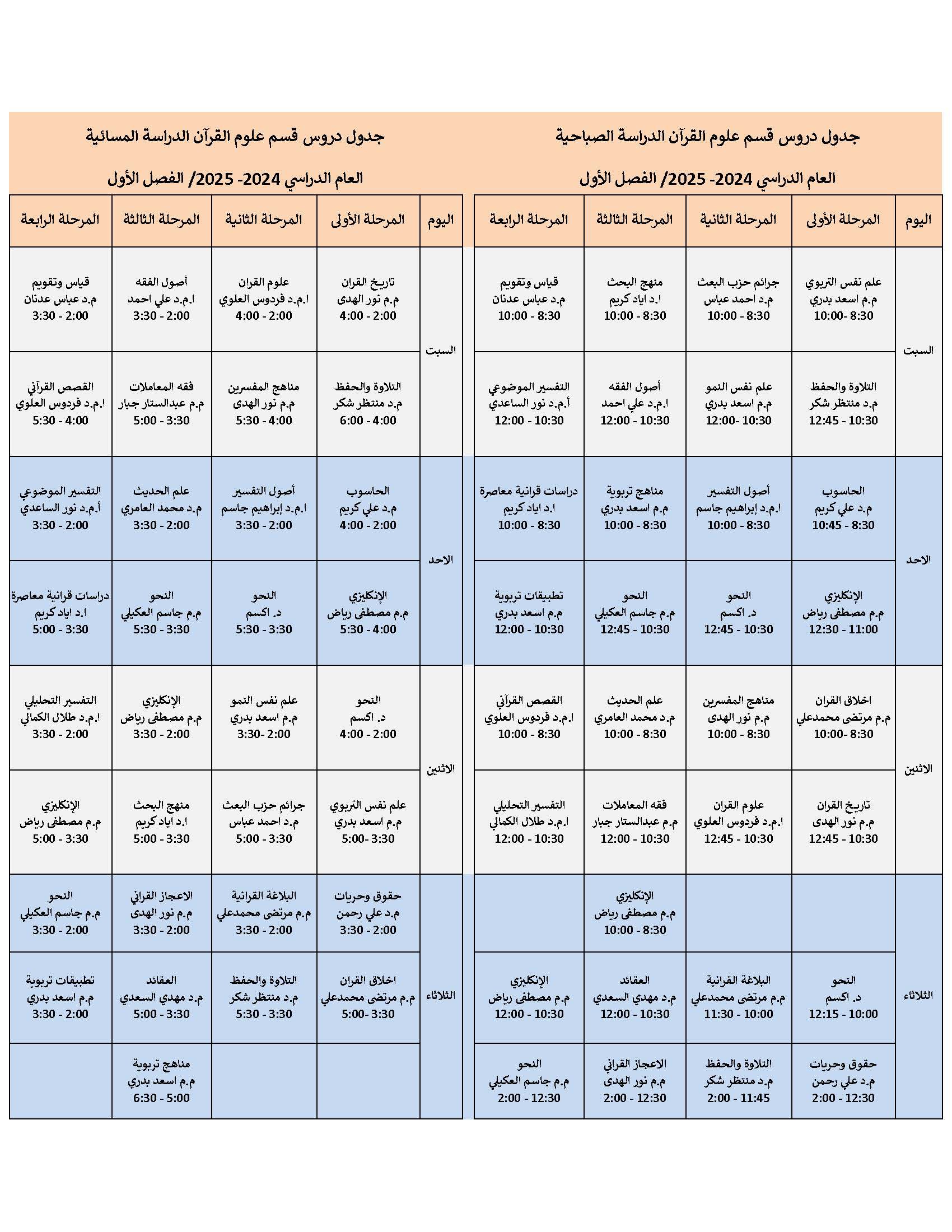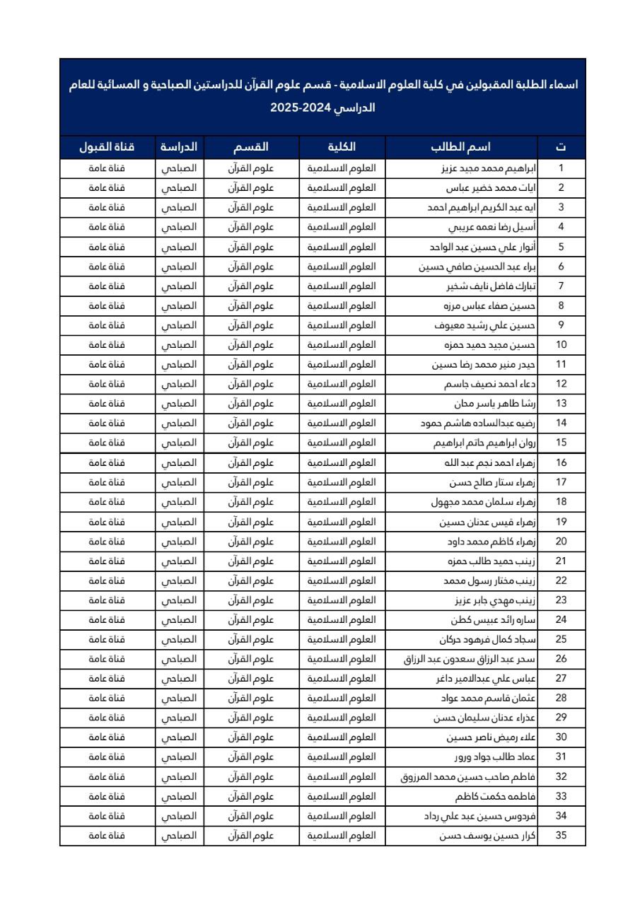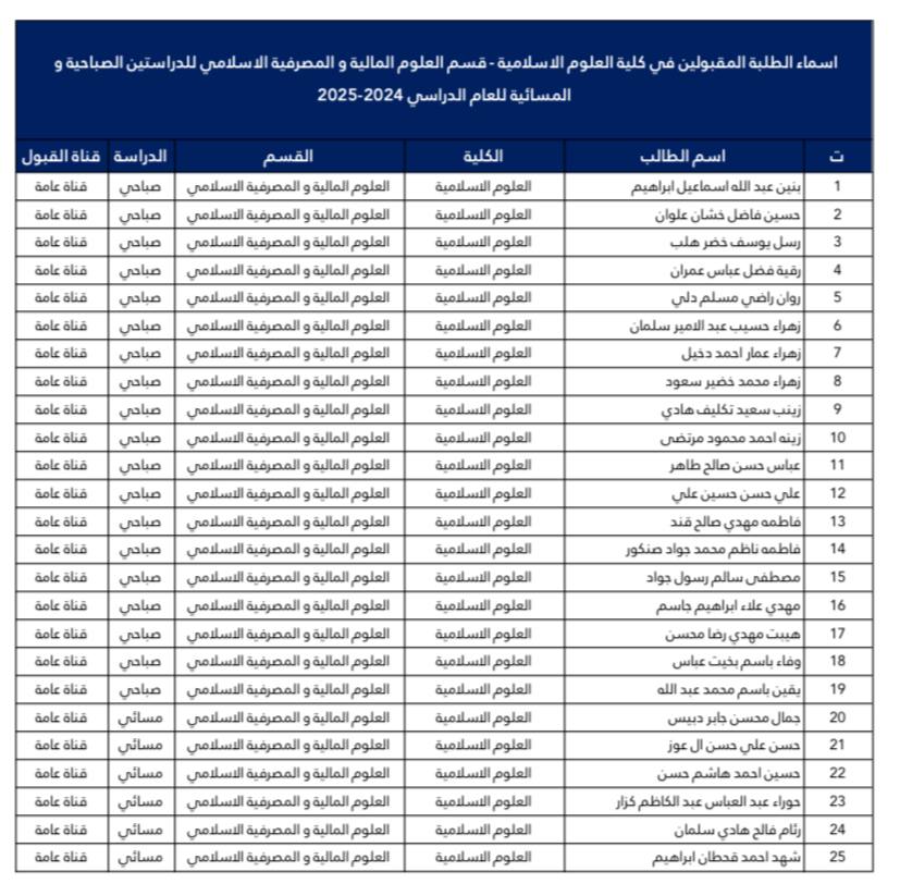 أسماء الطلبة المقبولين في كلية العلوم الإسلامية قسم الفقه وأصوله للعام 2024-2025