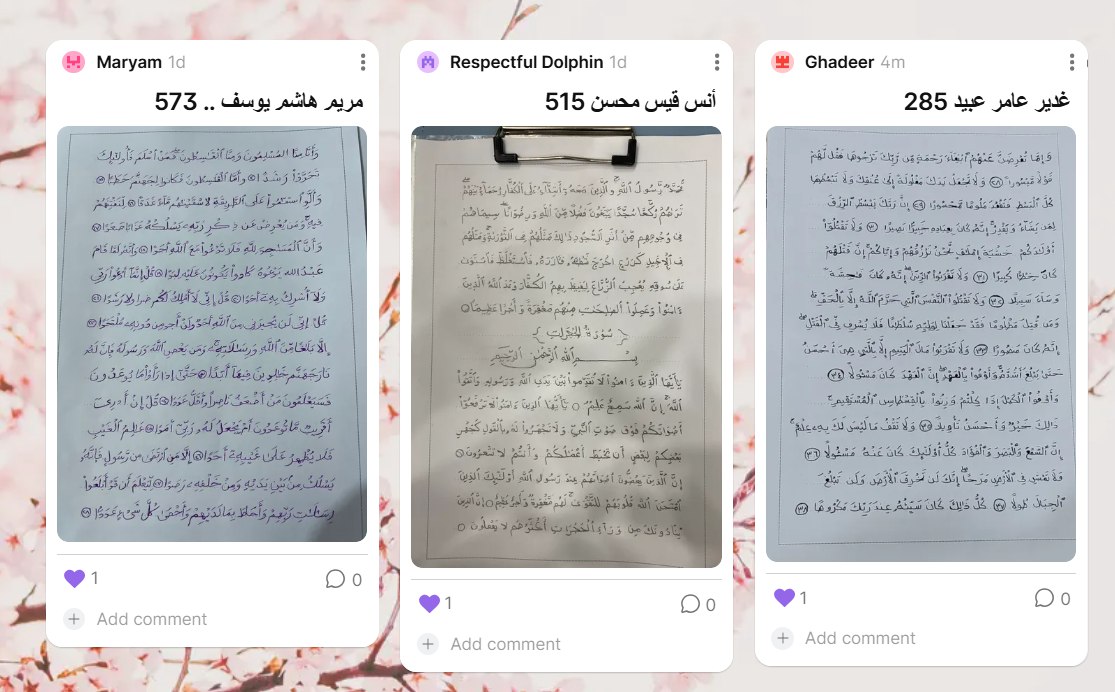 باركت اللجنة هذه الجهود المباركة، مثنية على التفاعل الكبير من قبل المشاركين في المشروع، ومؤكدة أن هذا الإنجاز يعد خطوة أولى نحو تحقيق رؤية المشروع الطموحة بكتابة المصحف الشريف بخط يد الطلبة والأساتذة.