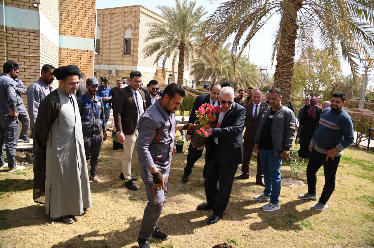 حيث شارك عميد كلية العلوم الإسلامية والكادر التدريسي وطلبة الكلية بتشجير حدائق الجامعة