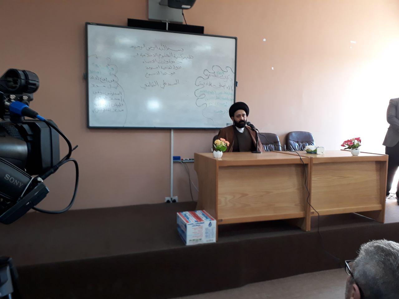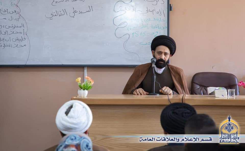 حل السيد علي الطالقاني ضيفاً على جامعة وارث الانبياء يوم الاثنين الموافق 11/3/2019 ضمن برنامج كلية العلوم الاسلامية باقامة ندوات ثقافية اسبوعية لتوعية الطلبة وارشادهم . وافتتح هذا الاسبوع بمحاضرة للسيد علي الطالقاني حيث مثلت ملتقى ثقافي وكان لها حضور وتفاعل متميز من طلاب الجامعة عرض بها الطالقاني اهم مسائل الشباب والمعوقات التي يواجهونها في حياتهم ليصلوا الى معطيات الحل عن طريق بيان مهمة الشباب والعمل الجاد في تبني المهام الموكلة اليهم