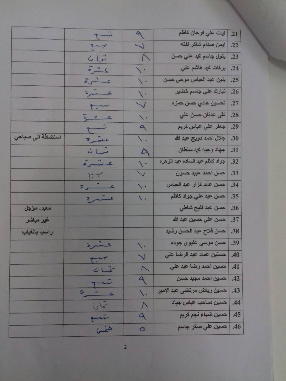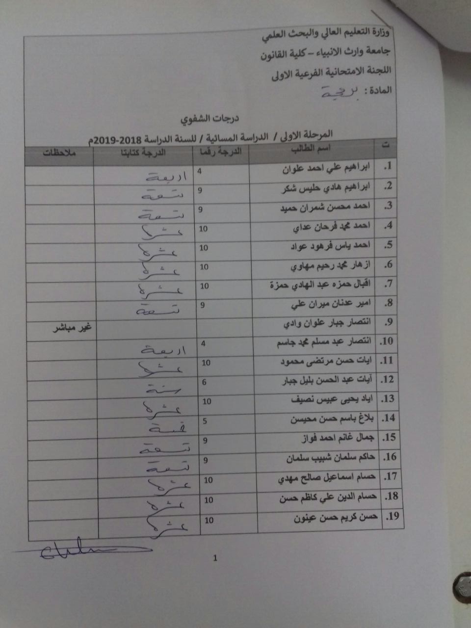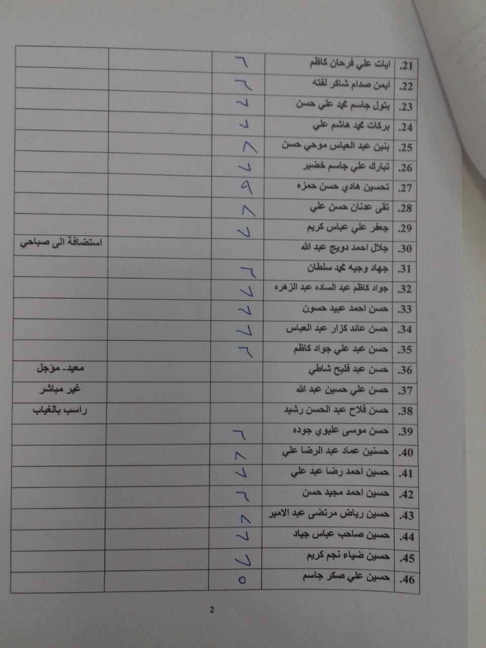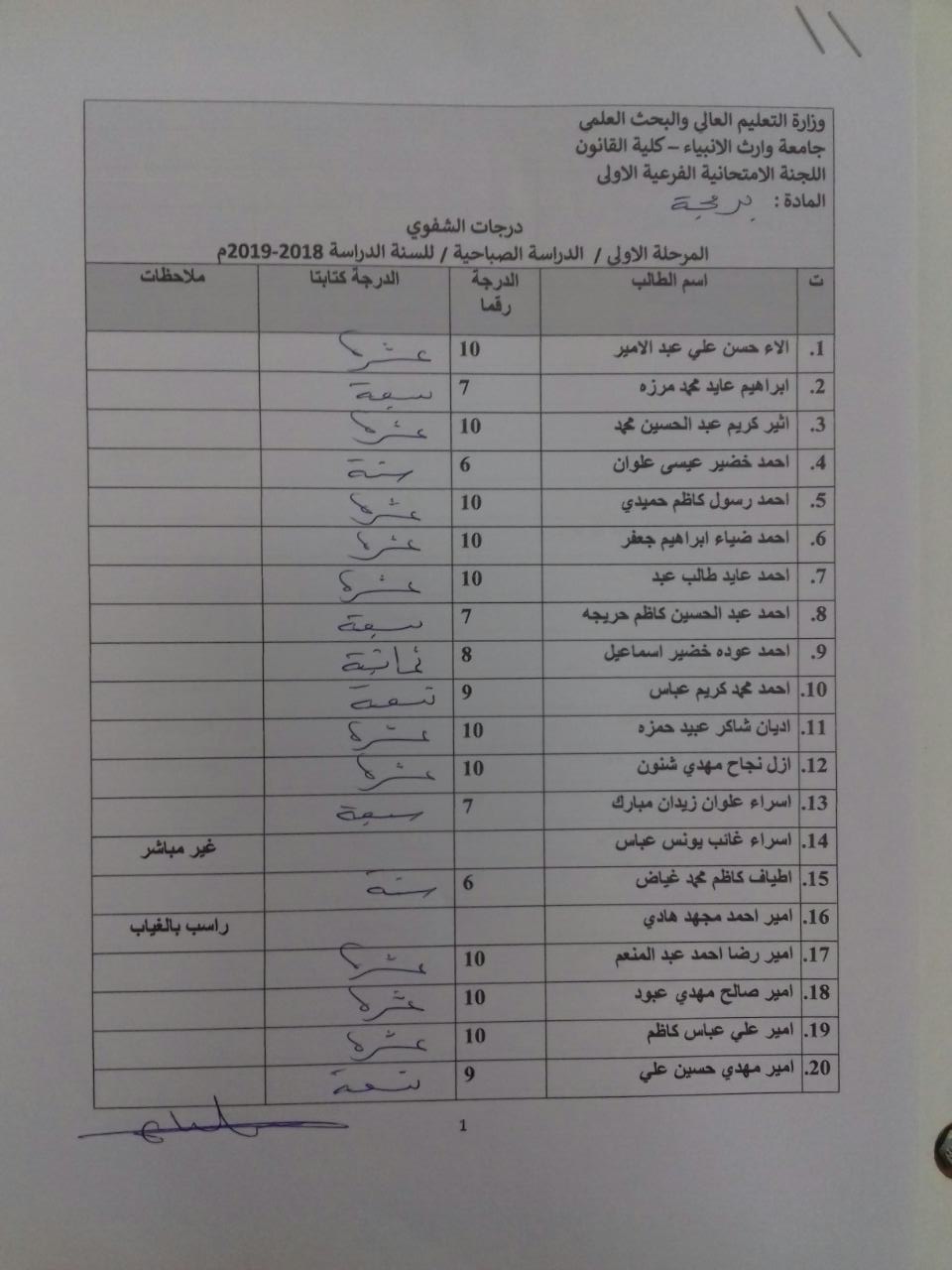 درجات الشفوي (المرحلة الاولى)