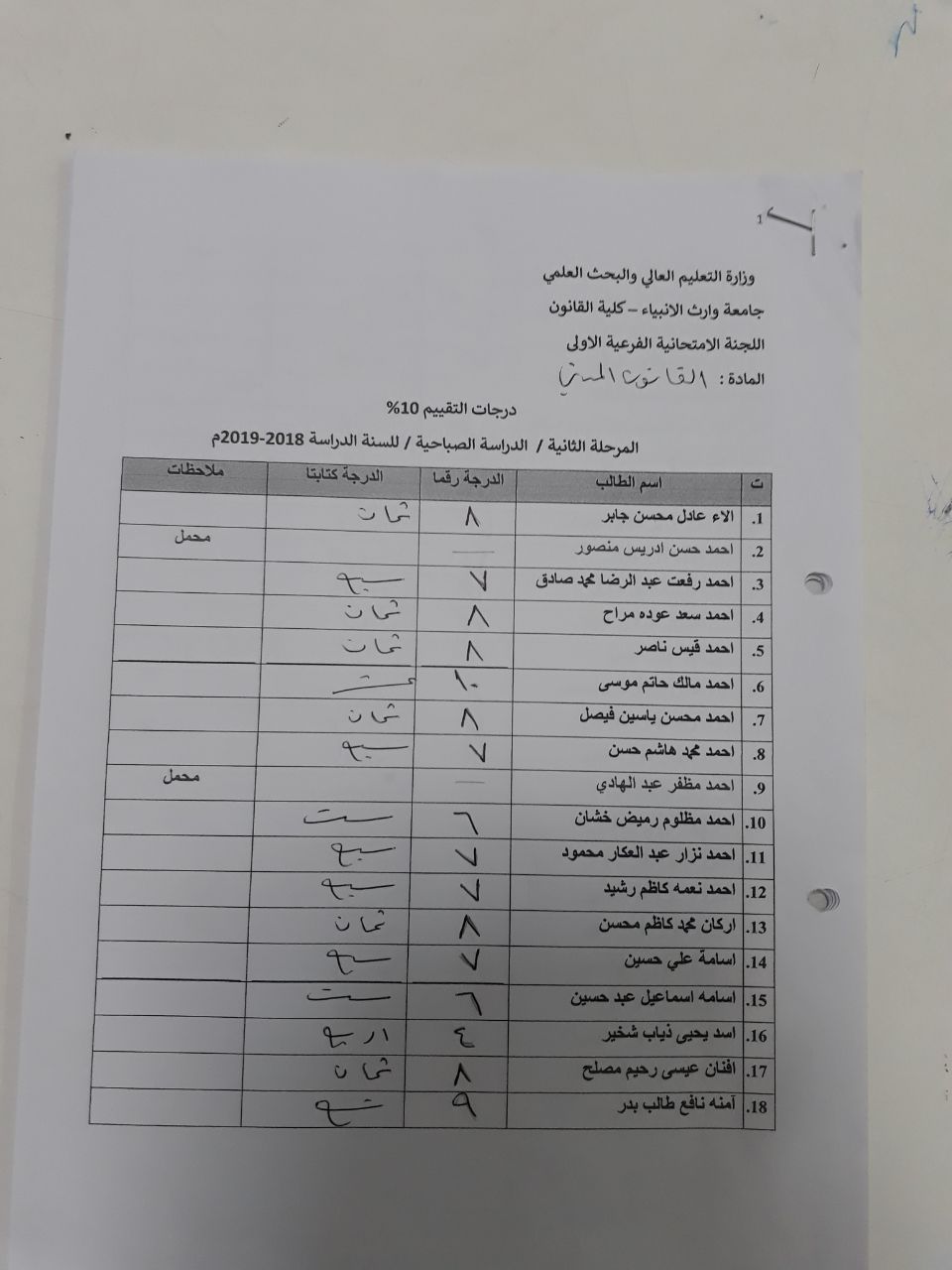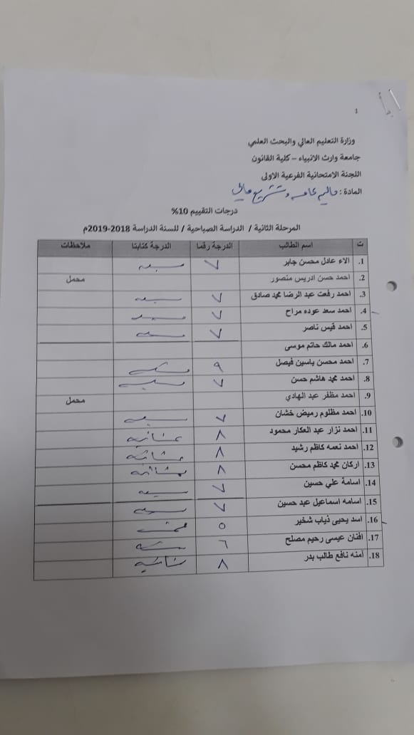 إجراء الامتحان المشترك لتعزيز الرصانة العلمية في قسم العلوم المالية والمصرفية الاسلامي كلية العلوم الاسلامية