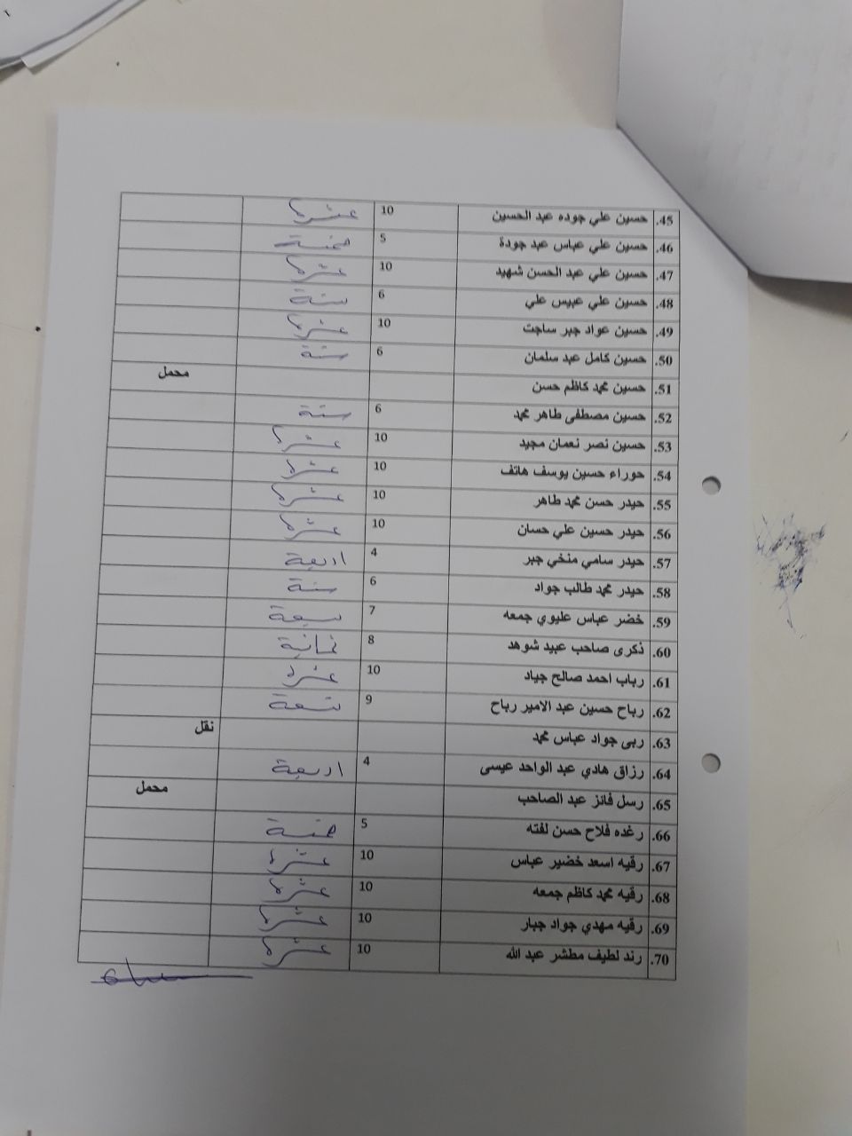 درجات الشفوي (المرحلة الثانية)