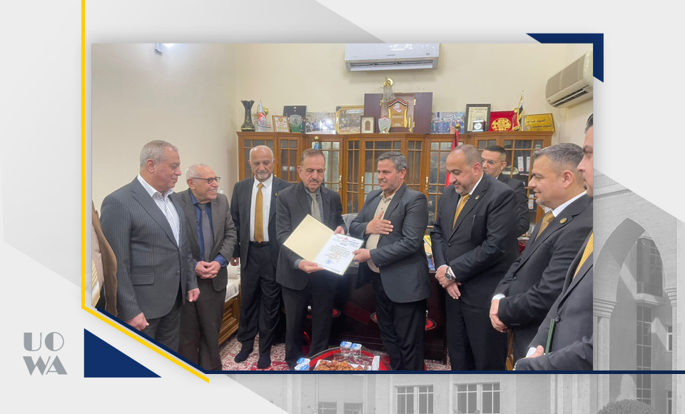 في أمسية رائعة زار وفد جامعة وارث الأنبياء مقر مجلس اعيان كربلاء المقدسة المؤلف من الدكتور إبراهيم الحياوي رئيس الجامعة والدكتور نوفل الاعرجي المساعد الإداري والدكتور واقد الموسوي المساعد العلمي والدكتور علي صاحب الشريفي عميد كلية القانون والدكتور علي عبدسعدون الغزي عميد كلية الطب والدكتور ليث محمدعباس معاون العميد والدكتور علي منصور جاسم معاون العميد والدكتور رياض عبدالرسول حنيوه رئيس فرع الأمراض والدكتور حسين هادي العوادي عميد كلية الهندسة والدكتور مرتض غانم عداي عميد كلية التمريض واساتذة اخرين .. واسقبل الوفد بحفاوة بالغة حيث تخلل اللقاء الحديث عن القفزات النوعية التي تحققت في التقدم التعليمي الطبي والقانوني مؤخرا للجامعة وفق المعايير المعتمدة لدى وزارة التعليم العالي والبحث العلمي كما تم تكريم المبدعين والمتميزين بوثيقة الشكر والتقدير مع منحهم درع الإبداع والتميز لاداءهم التعليمي العلمي الرائع متمنين الاستمرار بالنجاح والتقدم لكافة كليات الجامعة ومن اللهالتوفيق ... السبت 8/2/2025