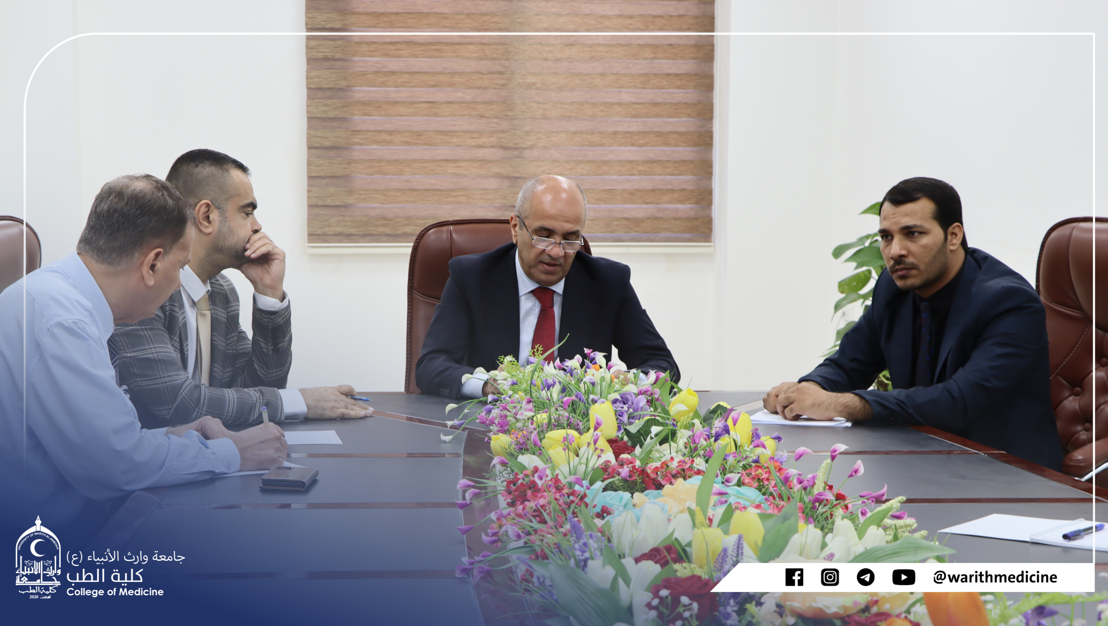 عقد مجلس كلية الطب في جامعة وارث الانبياء عليه السلام برئاسة الأستاذ الدكتور احمد عباس العزاوي عميد الكلية وحضور معاوني العميد للشؤون العلمية الدكتور علي الساعدي والشؤون الادارية الدكتور اسعد عباس الدعمي ورؤساء الفروع العلمية