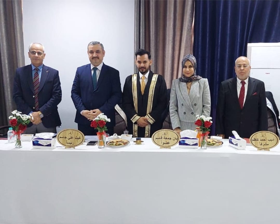شارك الأستاذ الدكتور أديب أحمد الزبيدي رئيس فرع علم الأدوية في كلية الطب - جامعة وارث الانبياء (عليه السلام) يوم الثلاثاء الموافق 5 / 3 / 2024 (عضواً ومشرفاً) في لجنة مناقشة رسالة طالب الماجستير ( بكر عماد نجم) في فرع علم الأدوية - كلية الطب / جامعة النهرين والموسومة: