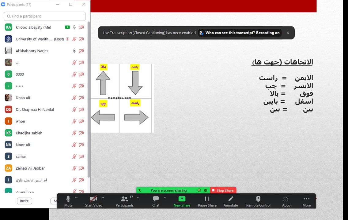 سعياً من مركز التعليم المستمر لتقديم افضل خدمة تطوعية ممكنة خلال الزيارة الاربعينية المليونية، وضمن خطة تهيئة الفريق التطوعي، قدم المركز دورة اللغة الفارسية لمتطوعات فريق رحماء بينهم الاسعافي، وذلك عبر المنصة الالكترونية ( Zoom ) لتسهيل مشاركة المتطوعات من المحافظات العزيزة الأخرى .