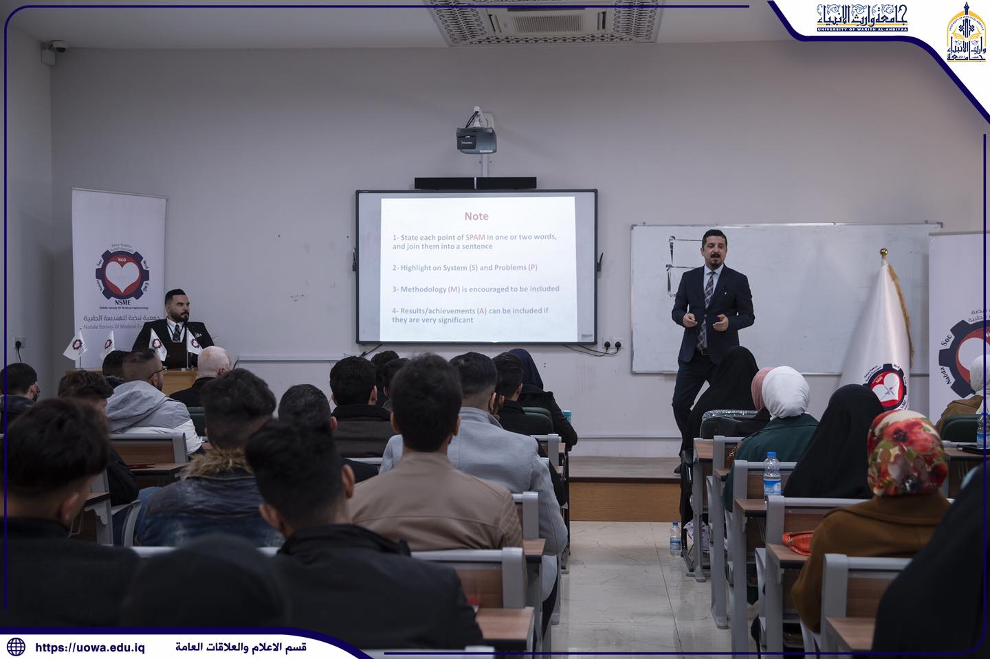 ضمن سعيه الحثيث لتخريج طلبة يتقنون تخصصهم، أقام قسم هندسة الطب الحياتي في جامعة وارث الأنبياء (عليه السلام) وبالتعاون مع جمعية نبضة للهندسة الطبية ورشة عمل تدريبية عن كيفية تصميم وبناء مشروع التخرج للطلبة. قدمها المهندس حسام من الجمعية المذكورة.جدير بالذكر أن الورشة نالت استحسان وتفاعل كبير من قبل طلبة القسم .ومن جانبها أعربت الجمعية عن شكرها للدكتور حاكم الجبوري عميد كلية الهندسة والدكتور حسين سالم رئيس قسم هندسة الطب الحياتي لتعاونهما في تنظيم وإنجاز الورشة.