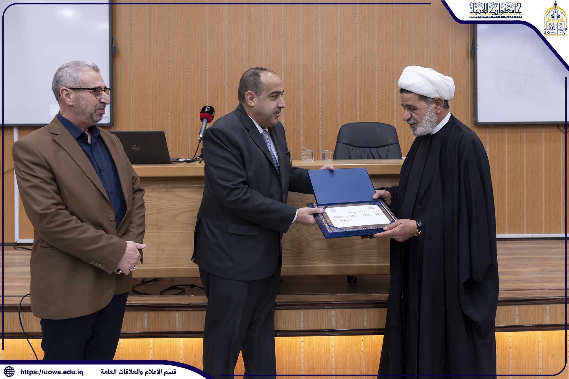 استقبلت رئاسة جامعة وارث الأنبياء(عليه السلام) متمثلةً بالسيد رئيس الجامعة الأستاذ الدكتور إبراهيم الحياوي ،السيد محافظ كربلاء المقدسة المهندس نصيف جاسم الخطابي.وتحدث السيد رئيس الجامعة الأستاذ الدكتور إبراهيم الحياوي قائلاً : سعدنا جداً بزيارة السيد محافظ كربلاء المقدسة الى الجامعة، اذ اطلع خلال جولته في اروقتها على البنى التحتية والقاعات الدراسية ،وحضر احد دروس التنمية البشرية للطلبة ،وابدى إعجابه الشديد بما تمتلكه الجامعة من إمكانيات علمية وعمرانية وتركيزها على جعل طلبتها متميزين في العلم والأخلاق.
