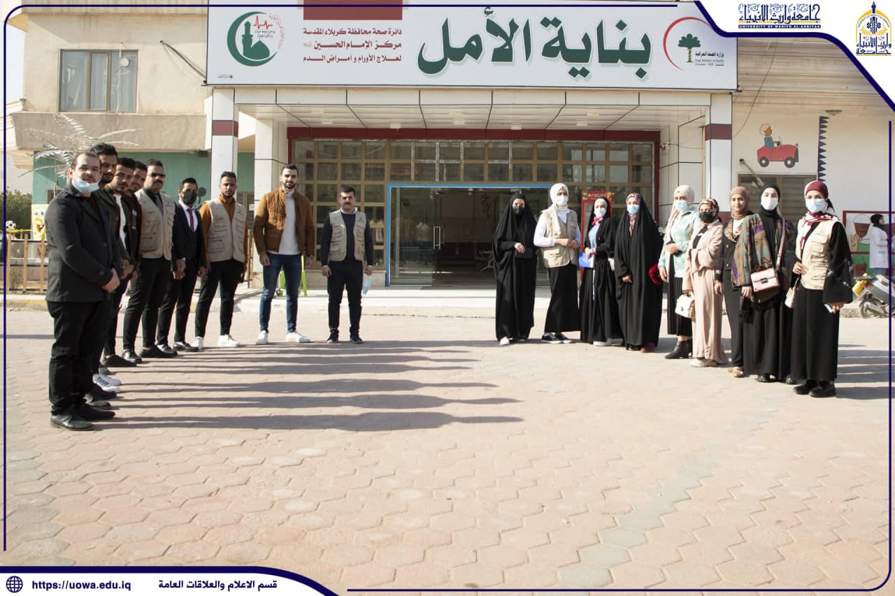 ضمن المشاريع الخيرية المستمرة التي يعمل بها الفريق وبدعم ورعاية رئاسة الجامعة زار فريق عطاء طلبة جامعة وارث الأنبياء (عليه السلام ) مؤسسة وارث للأمراض السرطانية التابعة للأمانة العامة للعتبة الحسينية المقدسة ومركز الأورام السرطانية في مدينة الامام الحسين ( عليه السلام ) الطبية في كربلاء المقدسة لتقديم الدعم المعنوي للأطفال المرضى من هدايا والعاب ومستلزمات. يذكر أن فريق عطاء طلبة جامعة وارث الأنبياء ( عليه السلام ) يقدم سنوياً العديد من المبادرات المجتمعية والإنسانية من أجل زرع روح الفريق الواحد خدمة لبلدنا العزيز .