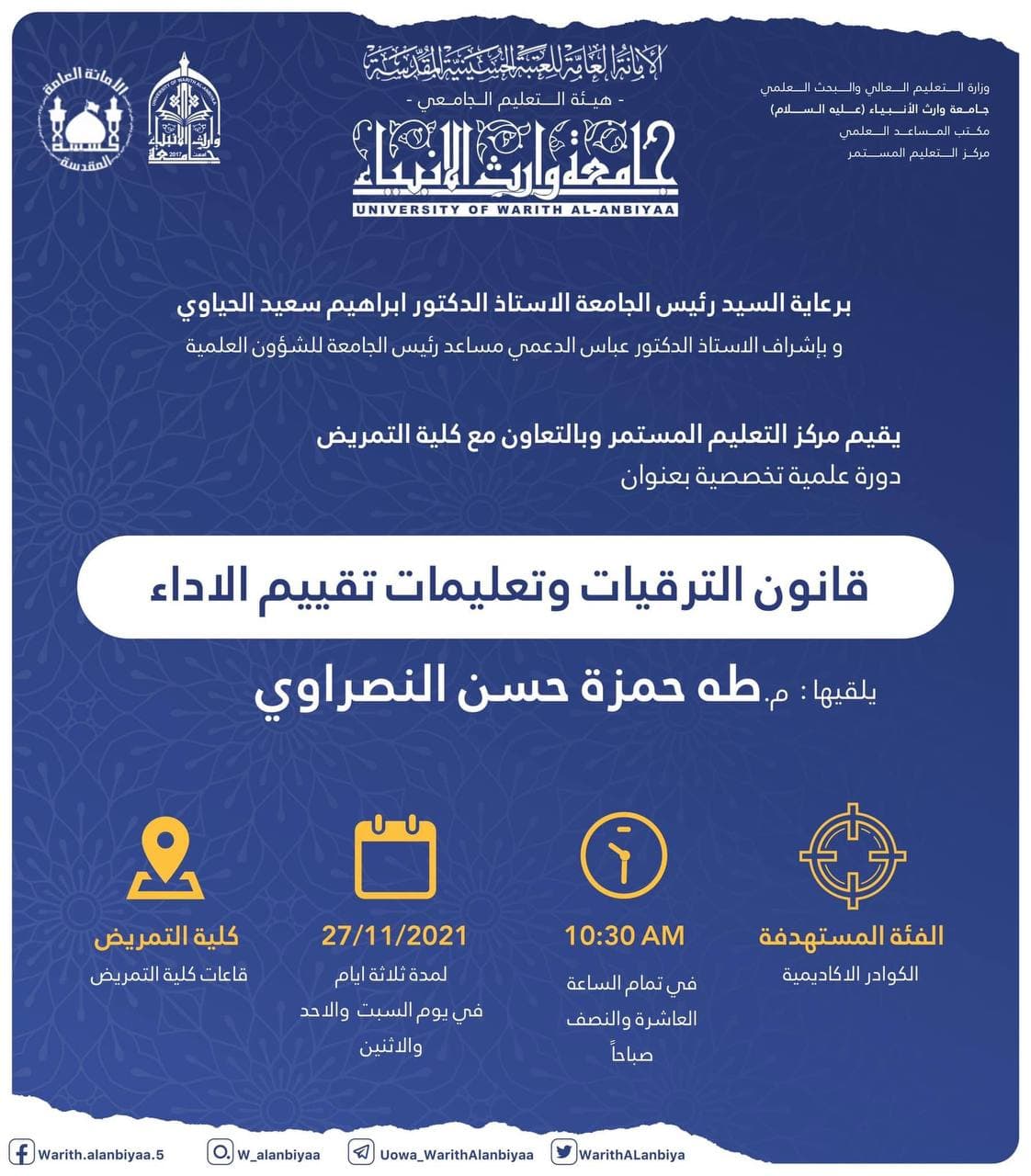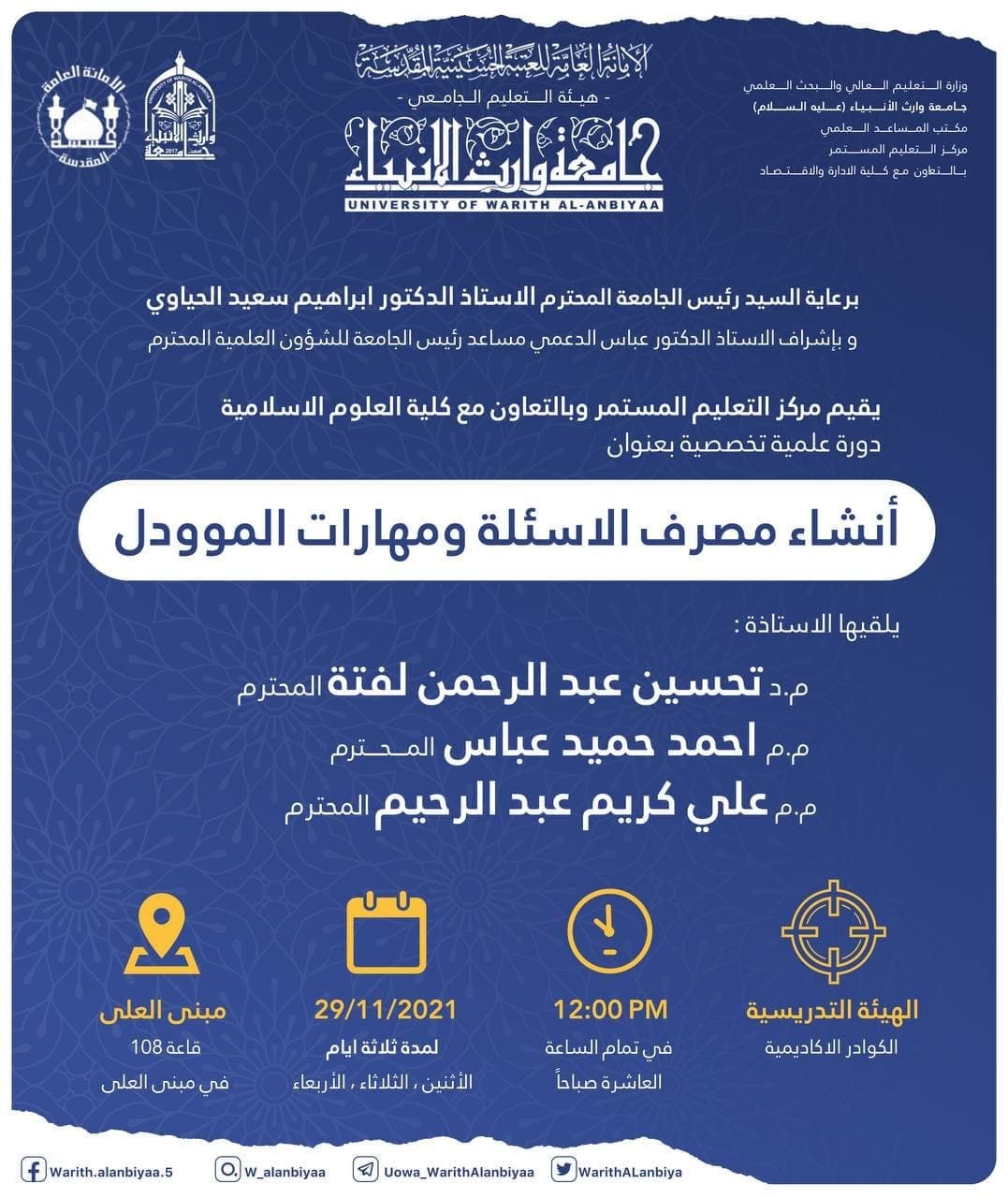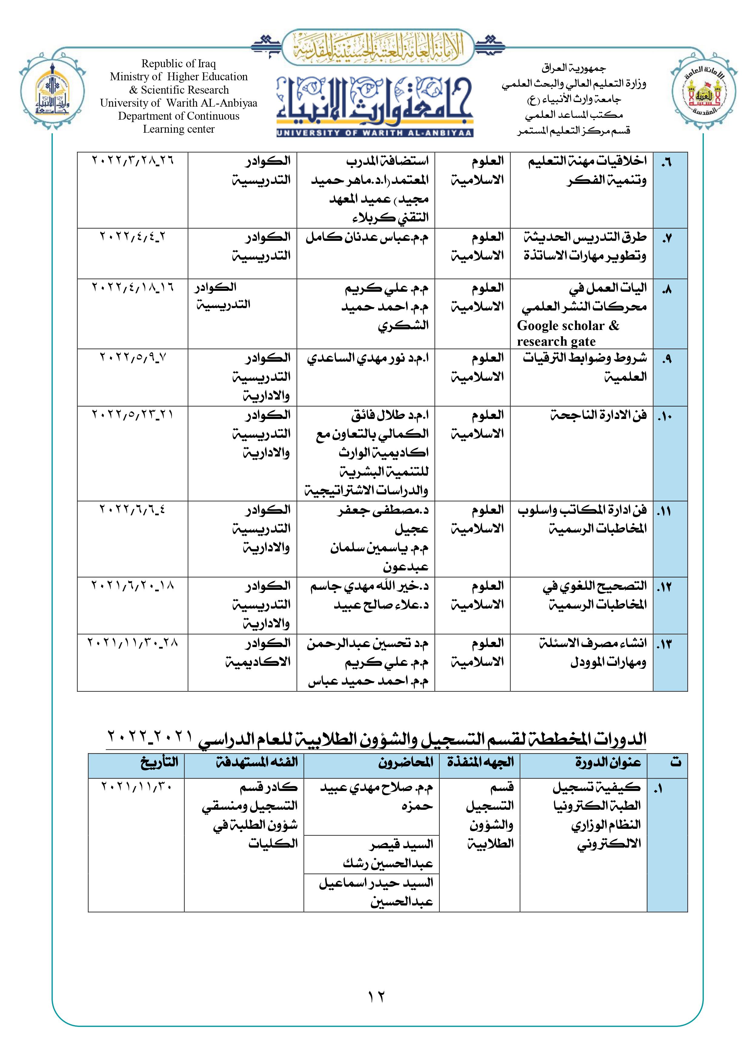 دورات مركز التعليم المستمر في جامعة وارث الانبياء(عليه السلام) المقترح انجازها للعام الدراسي 2021-2022