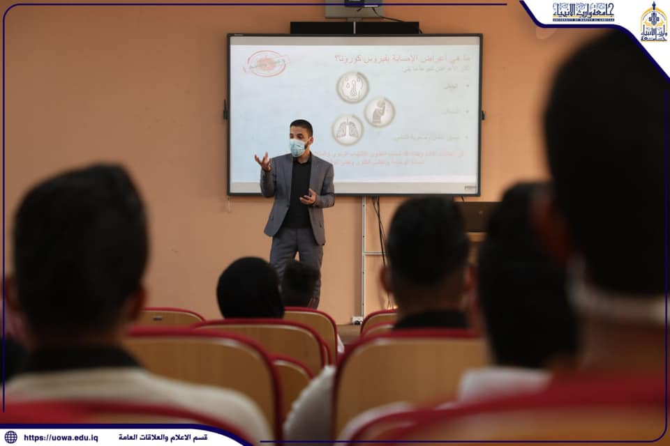 اقام مركز التعليم المستمر في جامعة وارث الانبياء(عليه السلام)وبالتعاون مع كلية التمريض دورة تدريبية بعنوان (طرق الوقاية من فايروس كورونا المستجد وأهم الوسائل للسيطرة على انتشاره) القاها م.م.بهاء علاء ، وعن اهم ما جاء فيها تحدث محاضر الدورة م.م.بهاء علاء الدعمي قائلاً: ان الهدف من الدورة هو تحقيق ما يعرف بالتثقيف الصحي (health education) لإشاعة المفاهيم الحقيقية وزيادة الوعي الصحي لأهم الوسائل المتبعة للتعرف على الاصابات باستخدام الوسائل التشخيصية الصحيحة واهم العلامات الواردة اثناء الاصابة التي تسهم في عملية التشخيص ، واهم الاجرائات الوقائية المتبعة للحد من انتشار العدوى وطرق العناية بالاشخاص المصابين ، كان برنامج الدوره لمدة ثلاثة ايام ، اليوم الاول محاضرة نظرية تعريفية وضحت اهم تلك المفاهيم الأساسية ومستند على اهم تقارير منظمة الصحة العالمية وباستخدام وسائل توضيحية عملية ، اما اليوم الثاني والثالث فكان بشكل تطبيق عملي عن طريق جولات قام بها مجموعة من الطلبة مدربين ومجهزين بالأدوات الوقائية من كمامات وكفوف وبوسترات تعريفية تثقيفية في اروقة الجامعة لغرض نشر الثقافة داخل اروقة الجام لتكون المفاهيم الصحيحة أداة ووسيلة للدفاع والحد من انتشار هذه الجائحة العالمية .
