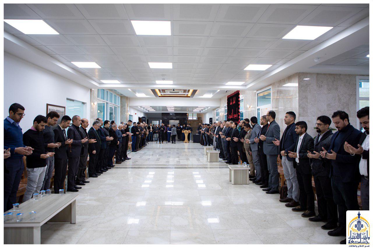 أقامت جامعة وارث الأنبياء(عليه السلام) مجلس عزاء ترحماً على أرواح الشهداء السعداء الذين سقطوا في التظاهرات السلمية في عدد من المحافظات العراقية ، حضر المجلس السيد رئيس الجامعة والسادة المساعدين وعدد غفير من السادة اعضاء الهيئة التدريسية وطلبة الجامعة ، ابتدأ المجلس بقراءة آيات من الذكر الحكيم وقراءة سورة الفاتحة لارواح الشهداء السعداء بينما ألقى عدد من الطلبة قصائد رثاء بحق شهداء العراق .
