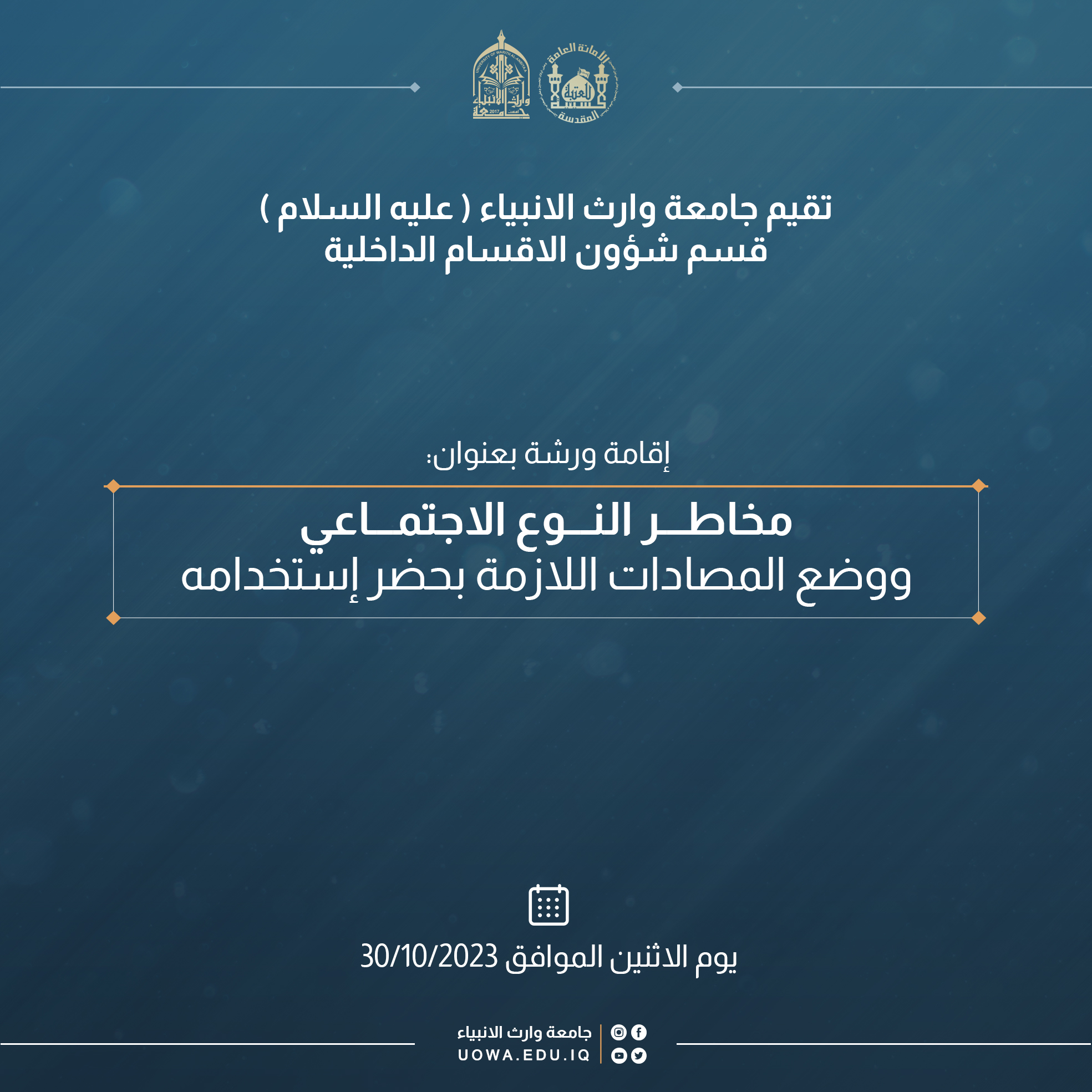 اقامة ورشة بعنوان "مخاطر النوع الاجتماعي ووضع المصادات اللازمة لحضر استخدامه" قدمها قسم شؤون الاقسام الداخلية