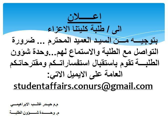 اعلان لجميع طلاب كلية التمريض