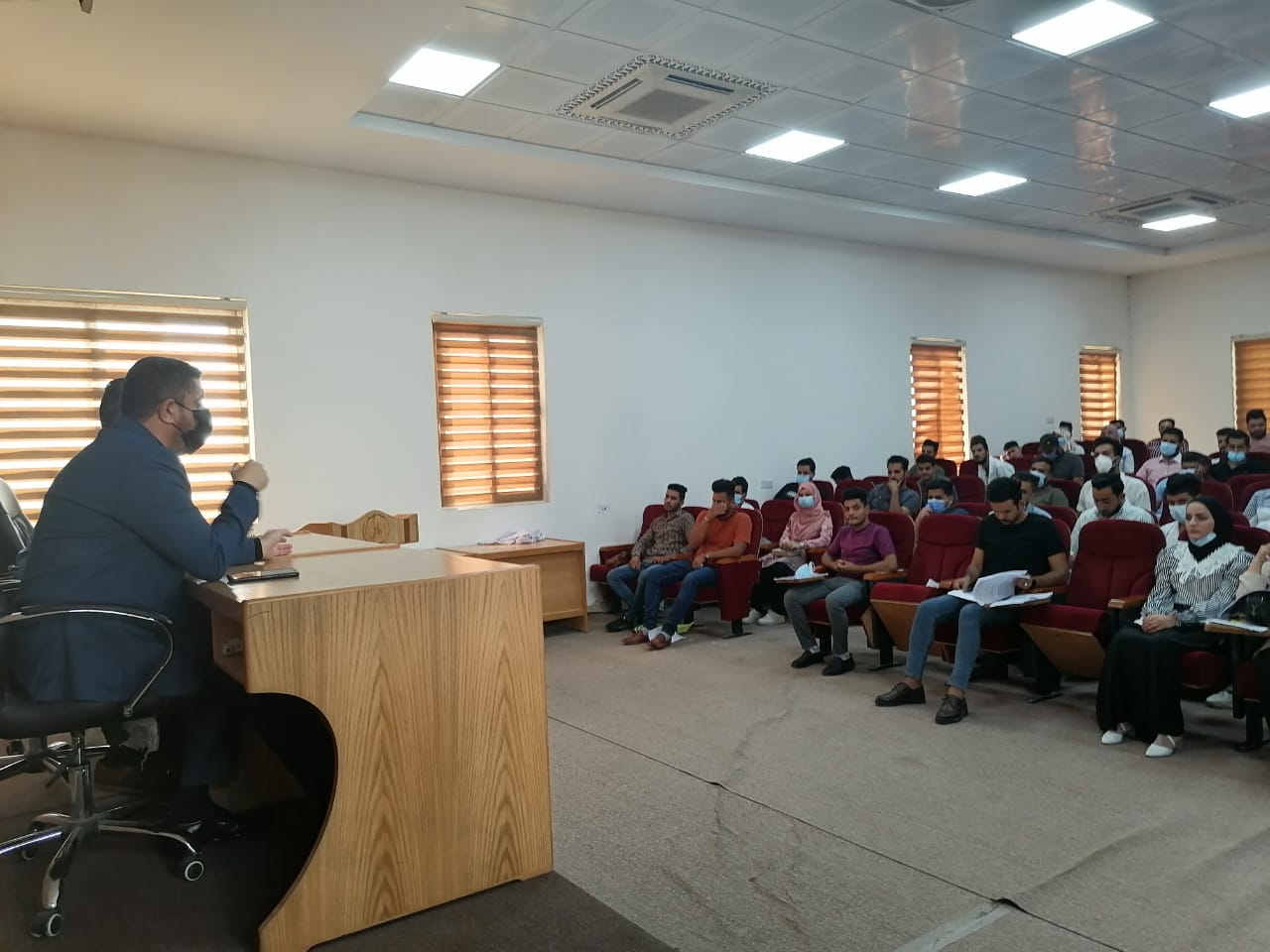 التقى الاستاذ المساعد الدكتور مرتضى غانم الجبوري عميد كلية التمريض مع طلبة المرحلة الرابعة حيث ناقش السيد العميد عدة مواضيع مع الطلبة اهمها التوجيهات المركزية حول اجراء الامتحانات النهائية وكذلك تم التطرق لصورة وحفلة التخرج واهميتها بالنسبة لطلبة المرحلة الرابعة والتي تعتبر الدفعة الاولى التي ستتخرج من كلية التمريض في جامعة وارث الانبياء ع